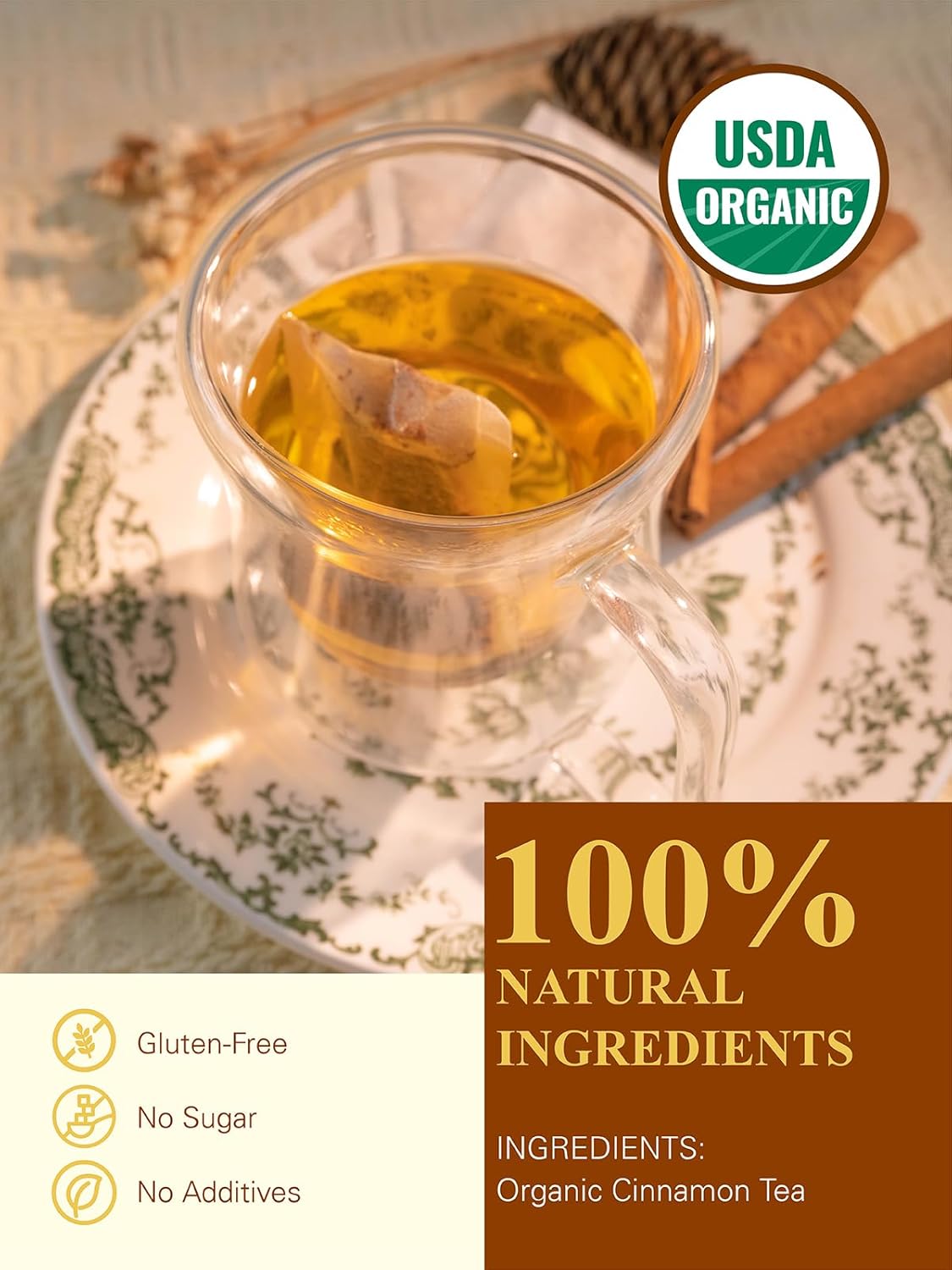 Gldnt Organic Cinnamon Tea Bags, Cinnamon Herbal Tea, Sweet & Slightly Spicy Flavor, Caffeine Free, 100 Count