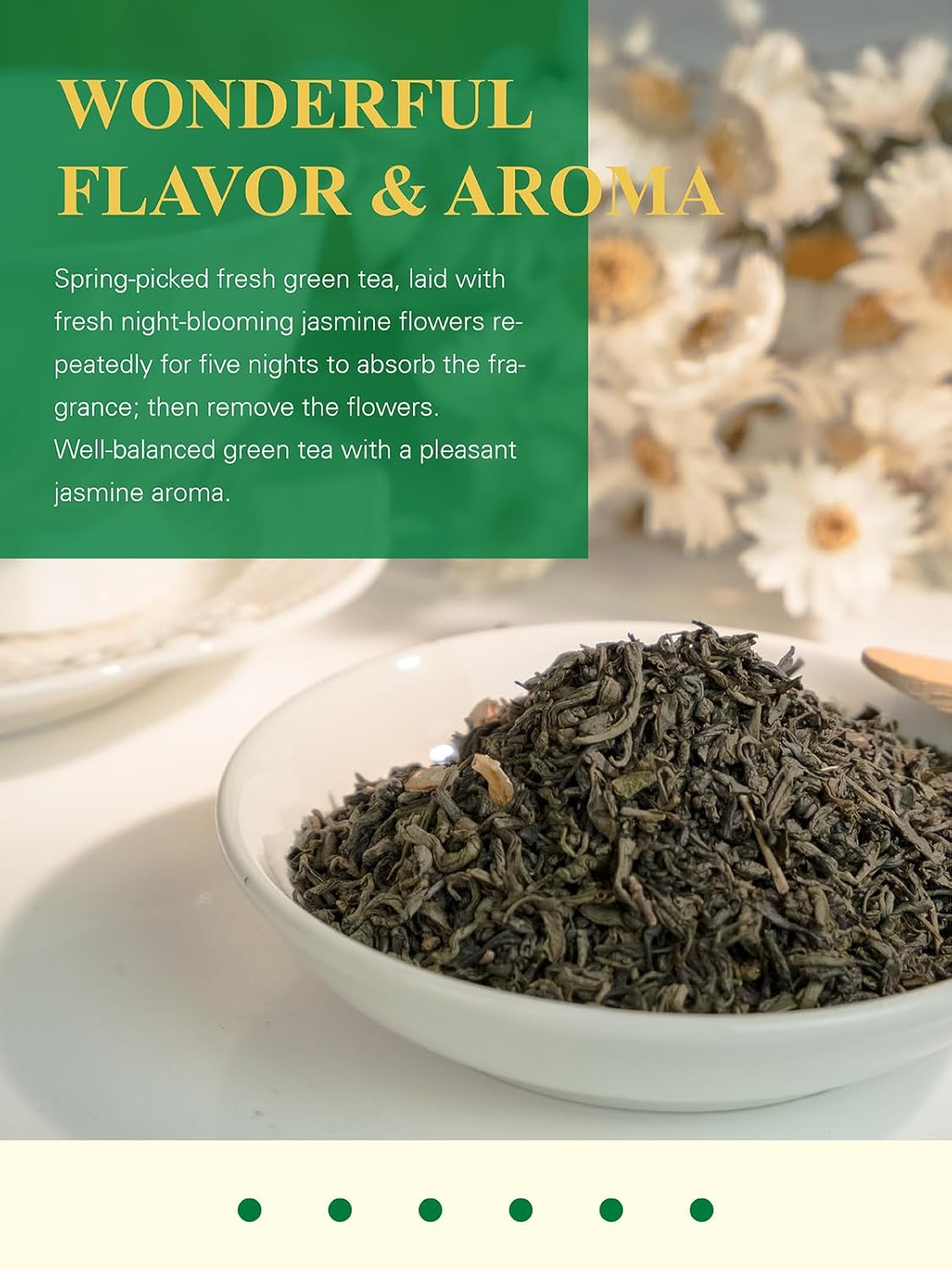 [Wonderful Flavor & Aroma] - Spring-Picked Young Buds Are Produced Into Premium Green Tea, Then Scented With Fresh Night-Blooming Jasmine Blossoms For Five Nights To Absorb The Jasmine Fragrance. When Brewing, It Elicits A Delightful Aroma