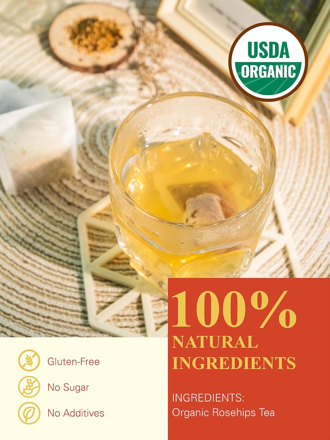 [Natural & Fresh] - This Organic Rosehips Tea Is Gluten-Free, Sugar-Free, Without Any Added Ingredients, Simple And Healthy. Packaged In The High-Quality Resealable Kraft Pouch With Foil Inside To Keep Tea Fresh