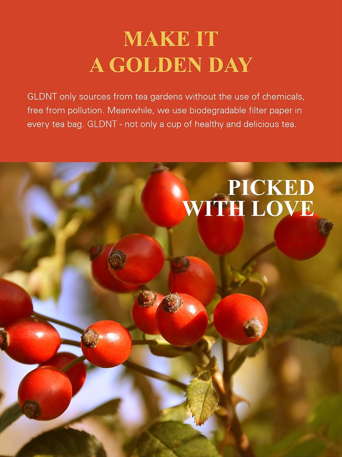 Gldnt Organic Rosehips Tea Bags, Organic Rose Hips, Fruity Flavor And Aroma, Caffeine Free, 100 Count