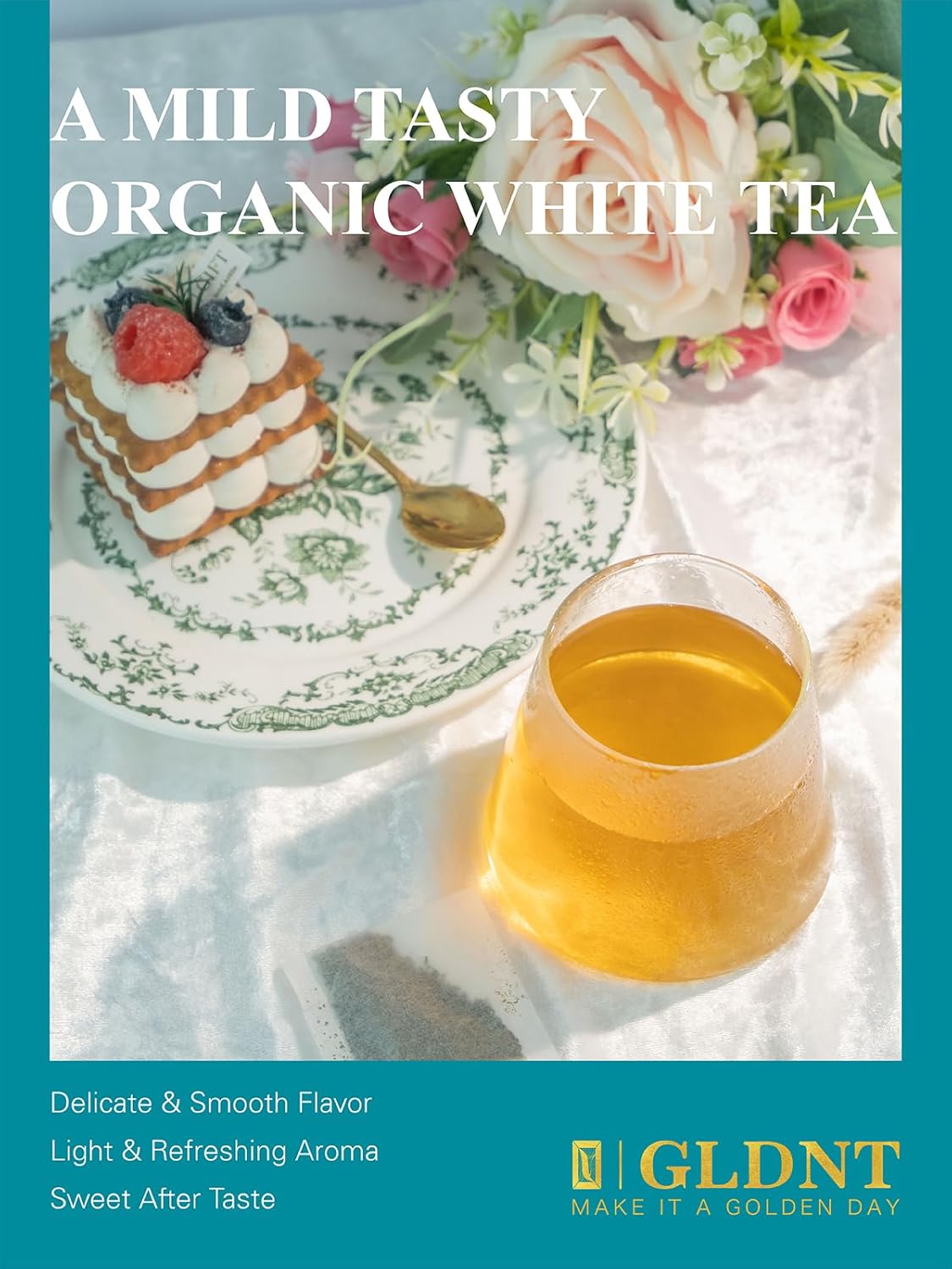 Gldnt Organic White Tea Bags, Natural Premium Organic White Tea, Mellow & Delicate Taste, Caffeinated, 100 Count