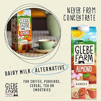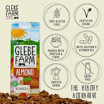 Glebe Farm Gluten Free Barista Almond Milk, Healthy Dairy Free Milk, Unsweetened Milk, Barista Grade Coffee Creamer, With No Added Sugar, Tasty Drink, 6 X 1 Litre