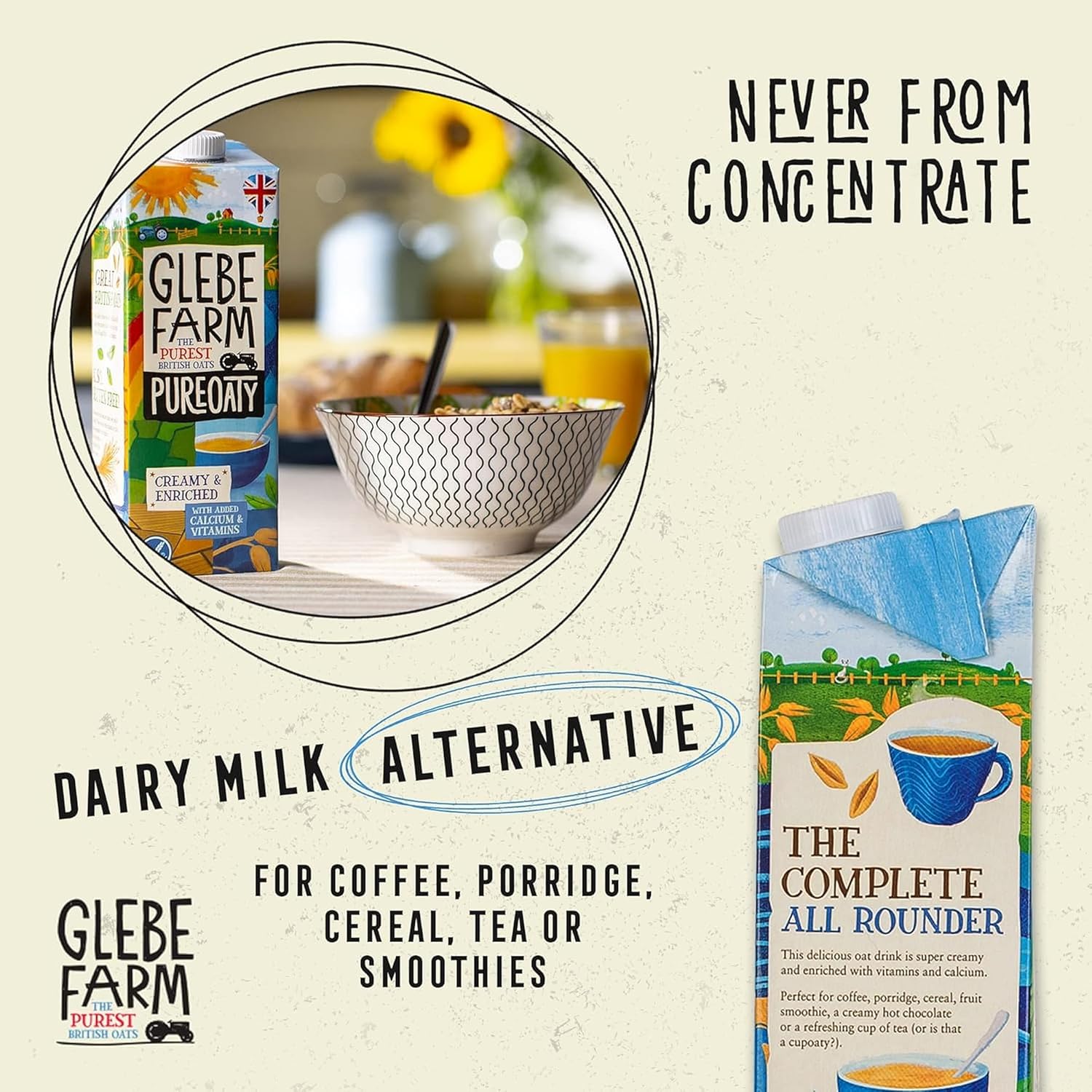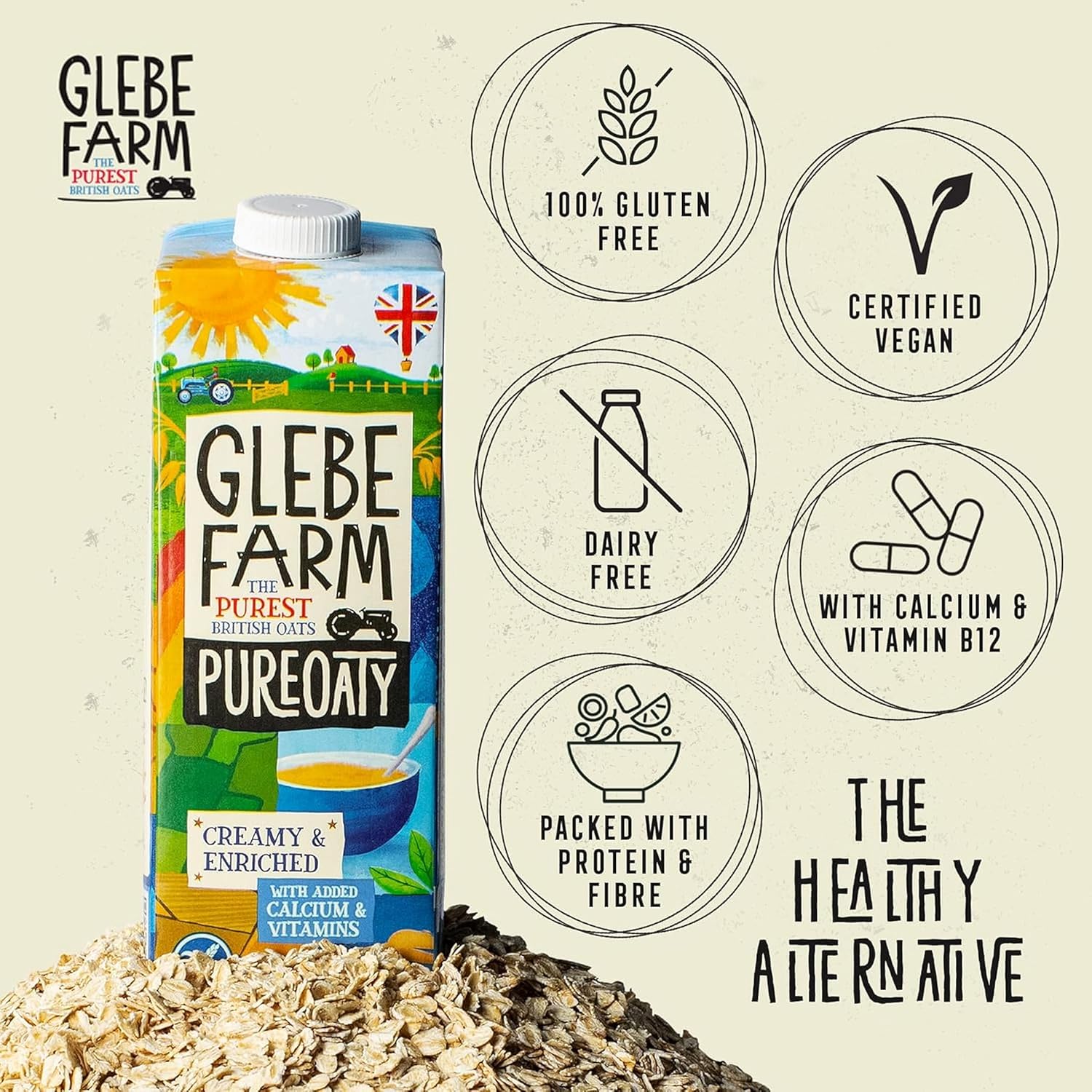 Glebe Farm Pureoaty Creamy & Enriched - Barista Style Gluten Free Dairy Free & Vegan Coffee Creamer, High Protein With Calcium & Vitamin B12, 6 X 1 Litre