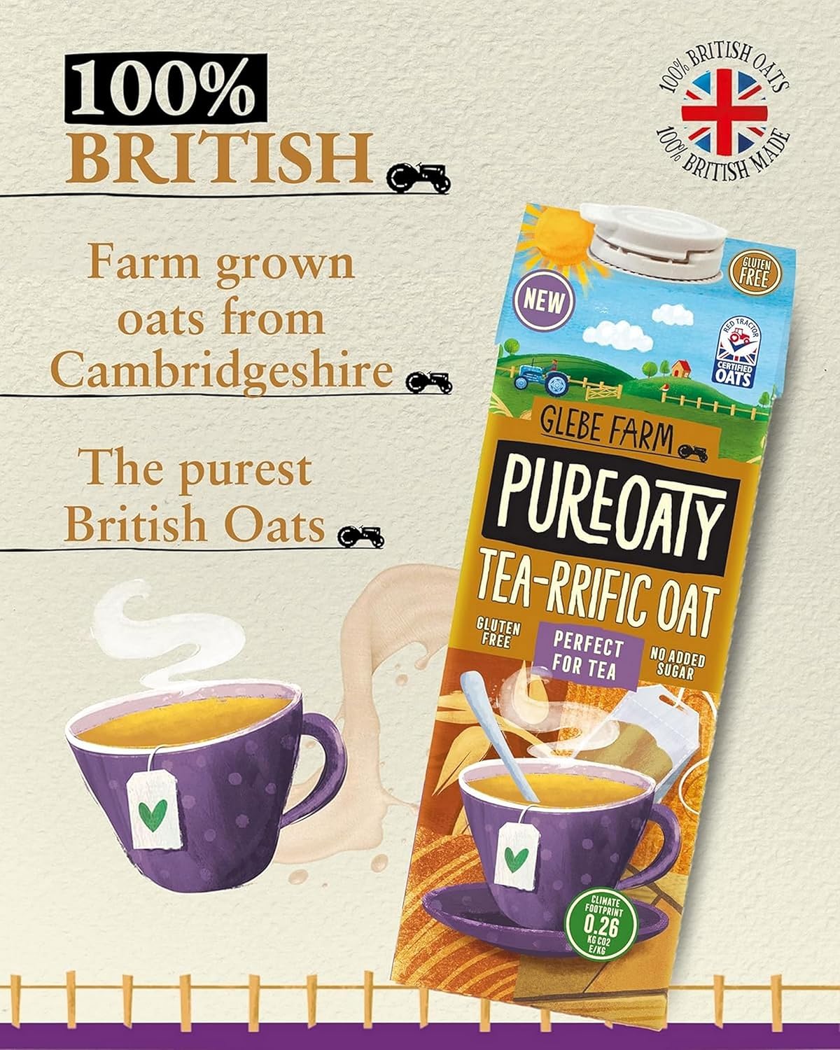 Glebe Farm Pureoaty Tea-Riffic Oat Drink | Dairy-Free & Gluten-Free | Oat Milk Crafted For Tea | Non-Splitting Formula | Vegan Oat Milk, Tea-Specific, 1L Carton (6-Pack)
