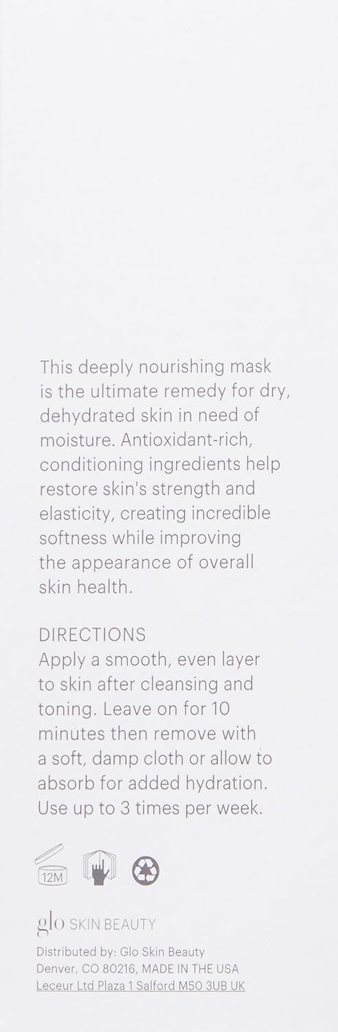Product Description "Restorative Mask is a deeply nourishing mask and is the ultimate remedy for dry, dehydrated skin in need of moisture. Antioxidant-rich, conditioning ingredients help restore skin's strength and elasticity, creating incredible softness while improving the appearance of overall skin health. This formula is an incredible sleeping mask when skin is feeling extra dry and dehydrated, especially during cold winter months. Paraben free." Brand Story Glo Skin Beauty from your cleanser to your lipstick,RESTORATIVE MASK: Nourishing remedy for ultimate skin-conditioning,HYDRATING: A deeply nourishing mask and is the ultimate remedy for dry, dehydrated skin in need of moisture,RESTORE: Antioxidant-rich, conditioning ingredients help restore skin's strength and elasticity, creating incredible softness while improving the appearance of overall skin health,STRENGTHEN: Ideal for addressing dry, dehydrated skin with aging concerns. Great for dry skin,GLO SKIN BEAUTY: Delivering on the promise of healthy, beautiful skin is what drives us every day at Glo Skin Beauty. Our innovative skincare and nourishing mineral makeup collections work together seamlessly to reveal your authentic best