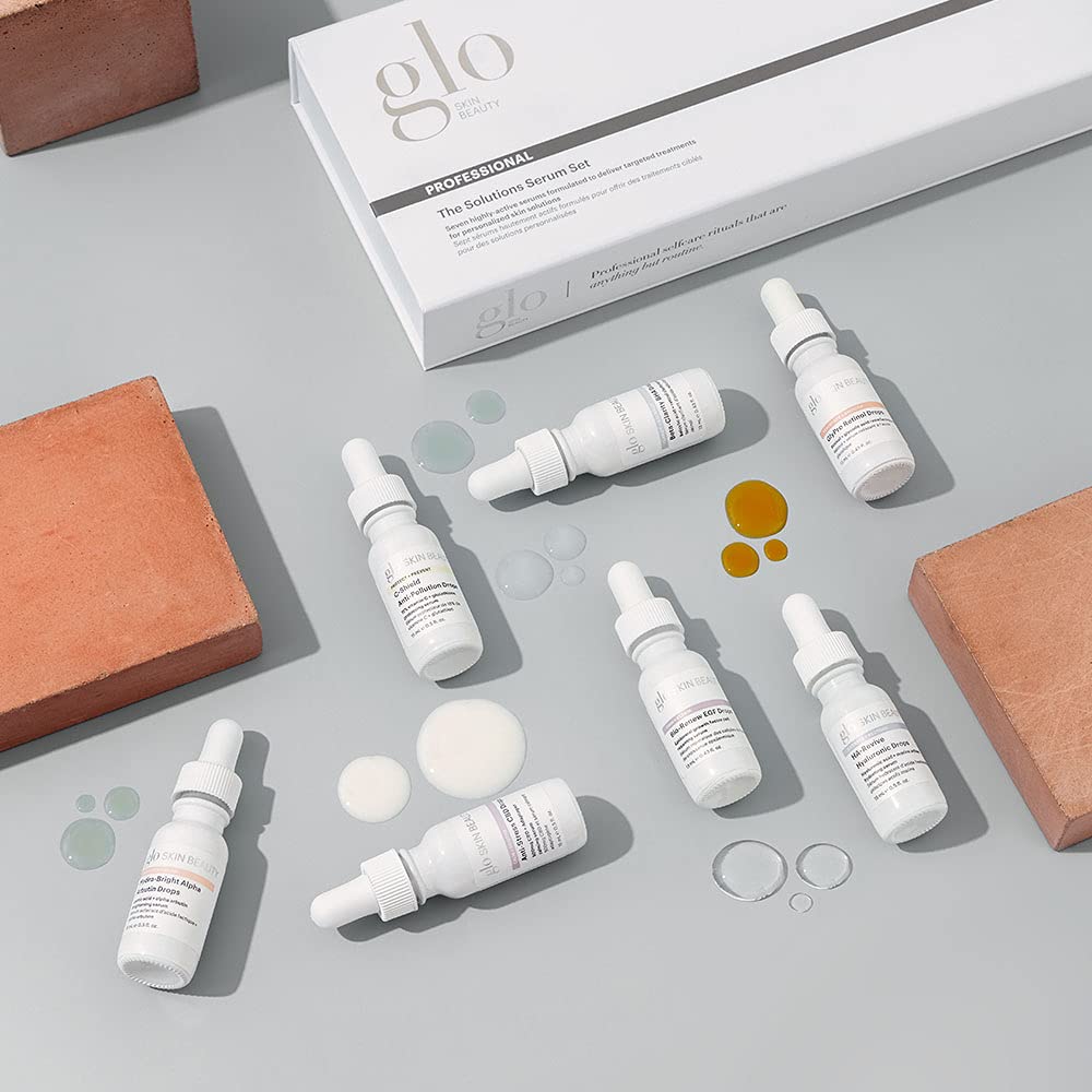 Product Description Starring our seven targeted treatment serums, The Solutions Serum set is curated to help you personalize your skincare solution, presenting each serum in a smart dropper format to deliver precise dosage. Each discovery-size serum is formulated with a high level of actives to target and treat specific skin concerns including dryness, fine lines, hyperpigmentation, blemishes, and sensitivity. Brand Story Harness the power of clean beauty with professional foundations, cleansers & moisturizers from Glo Skin Beauty,SOLUTION SERUMS SET: Starring our seven targeted treatment serums, The Solutions Serum set is curated to help you personalize your skincare solution, presenting each serum in a smart dropper format to deliver precise dosage,TARGET: From anti-aging to acne, environmental protection to firming, smoothing to soothing, each serum offers a targeted skin solution powered by curated actives for clinically-proven results,TREAT: Presented in a smart dropper format for precise dosage, drop according to your skinās needs to personalize your clean + clinical skin solution,SOLVE: For skin as unique as you are, with seven serums in the set, personalize your clean + clinical skin solution depending on what your skin needs, when it needs it,GLO SKIN BEAUTY: Delivering on the promise of healthy, beautiful skin is what drives us every day at Glo Skin Beauty. Our innovative skincare and nourishing mineral makeup collections work together seamlessly to reveal your authentic best