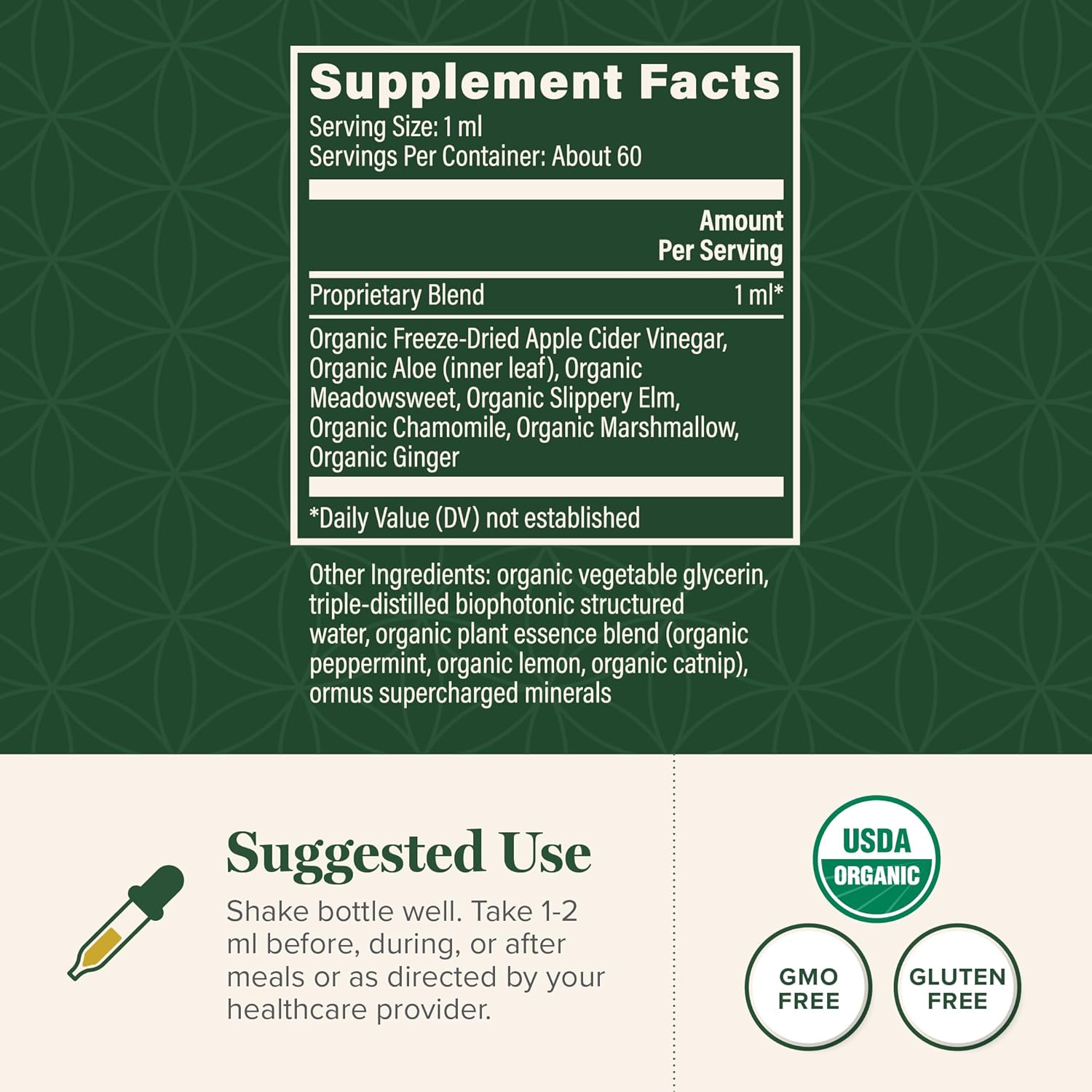 About this item Heartburn Relief - Acid reflux causes stomach acid to travel up through the esophagus resulting in the feelings of heartburn. We use apple cider vinegar, slippery elm, chamomile, marshmallow, ginger, and more to bring you indigestion relief. Upset Stomach Relief - Organic ingredients like aloe, marshmallow root, and meadowleaf work to protect the mucous membrane of the digestive system. These potent herbs are known for their soothing effects on the stomach and digestive tract. Supports Healthy Intestinal Function - Known as the “king of digestive herbs,” slippery elm bark is rich in mucilage, the active ingredient that soothes and nourishes the digestive tract against gastritis. An acid reducer for all adults. Fast-Acting Liquid Formula - The most common heartburn relief is in the form of a chewable tablet or lozenge but our Acid Reflux Relief is a natural, liquid solution that works quickly and gently. Get the natural relief that helps from the source. Manufactured In The USA - Our Acid Reflux Relief is manufactured in our own, state-of-the-art cGMP certified facility in Phoenix, Arizona. See more product details,Heartburn Relief - Acid reflux causes stomach acid to travel up through the esophagus resulting in the feelings of heartburn. We use apple cider vinegar, slippery elm, chamomile, marshmallow, ginger, and more to bring you indigestion relief,Upset Stomach Relief - Organic ingredients like aloe, marshmallow root, and meadowleaf work to protect the mucous membrane of the digestive system. These potent herbs are known for their soothing effects on the stomach and digestive tract,Supports Healthy Intestinal Function - Known as the “king of digestive herbs,” slippery elm bark is rich in mucilage, the active ingredient that soothes and nourishes the digestive tract against gastritis. An acid reducer for all adults,Fast-Acting Liquid Formula - The most common heartburn relief is in the form of a chewable tablet or lozenge but our Acid Reflux Relief is a natural, liquid solution that works quickly and gently. Get the natural relief that helps from the source,Manufactured In The USA - Our Acid Reflux Relief is manufactured in our own, state-of-the-art cGMP certified facility in Phoenix, Arizona