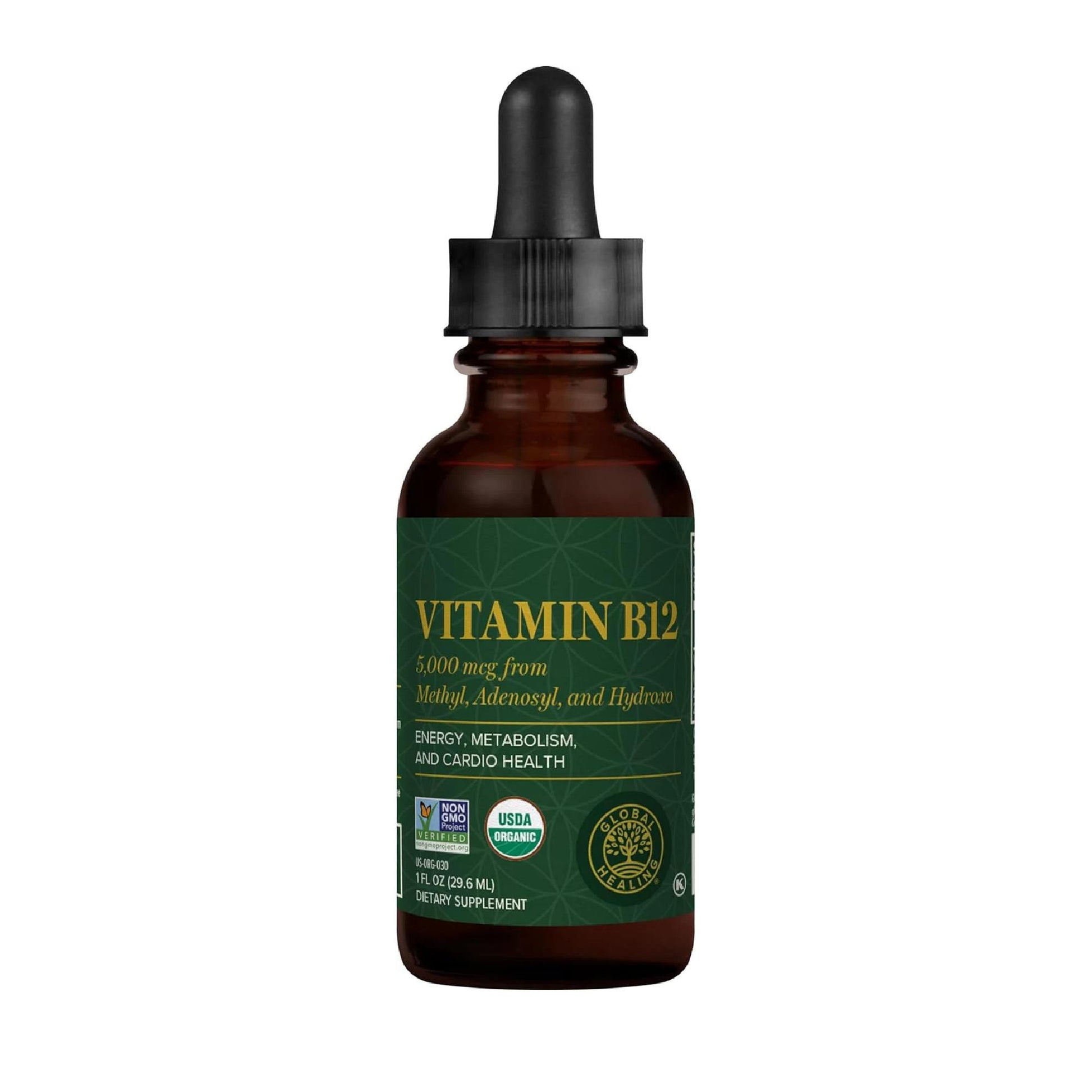 DESCRIPTION : Global Healing Vitamin B12 Tri-Blend, 5000 mcg Organic Sublingual Liquid Vitamin Drops | Methylcobalamin & Adenosylcobalamin & Hydroxo Blend for Long-Lasting Energy and Heart Health (1 Oz)1 Fl Oz
