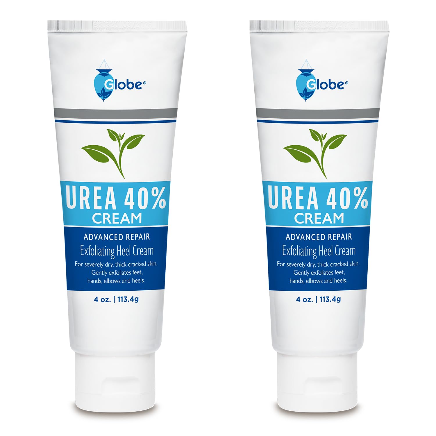 Globe (2 Pack Urea Cream 40% - (4 Oz) Intensive Hydration For Dry And Cracked Heels, Feet, Hands, Elbows And Knees - Callus Remover For Women - Helps Athletes Foot - Foot Odor - Total 8 Oz