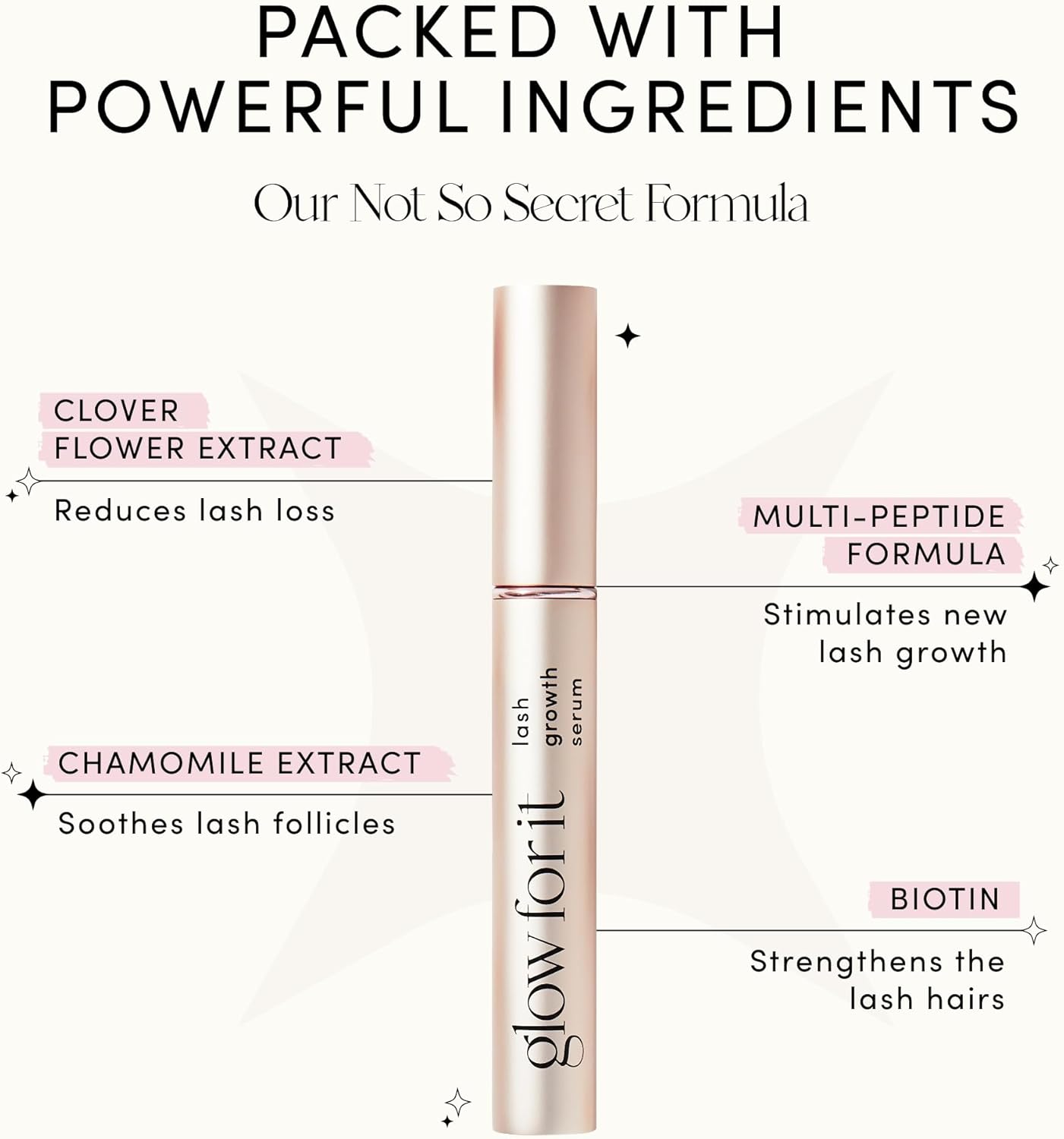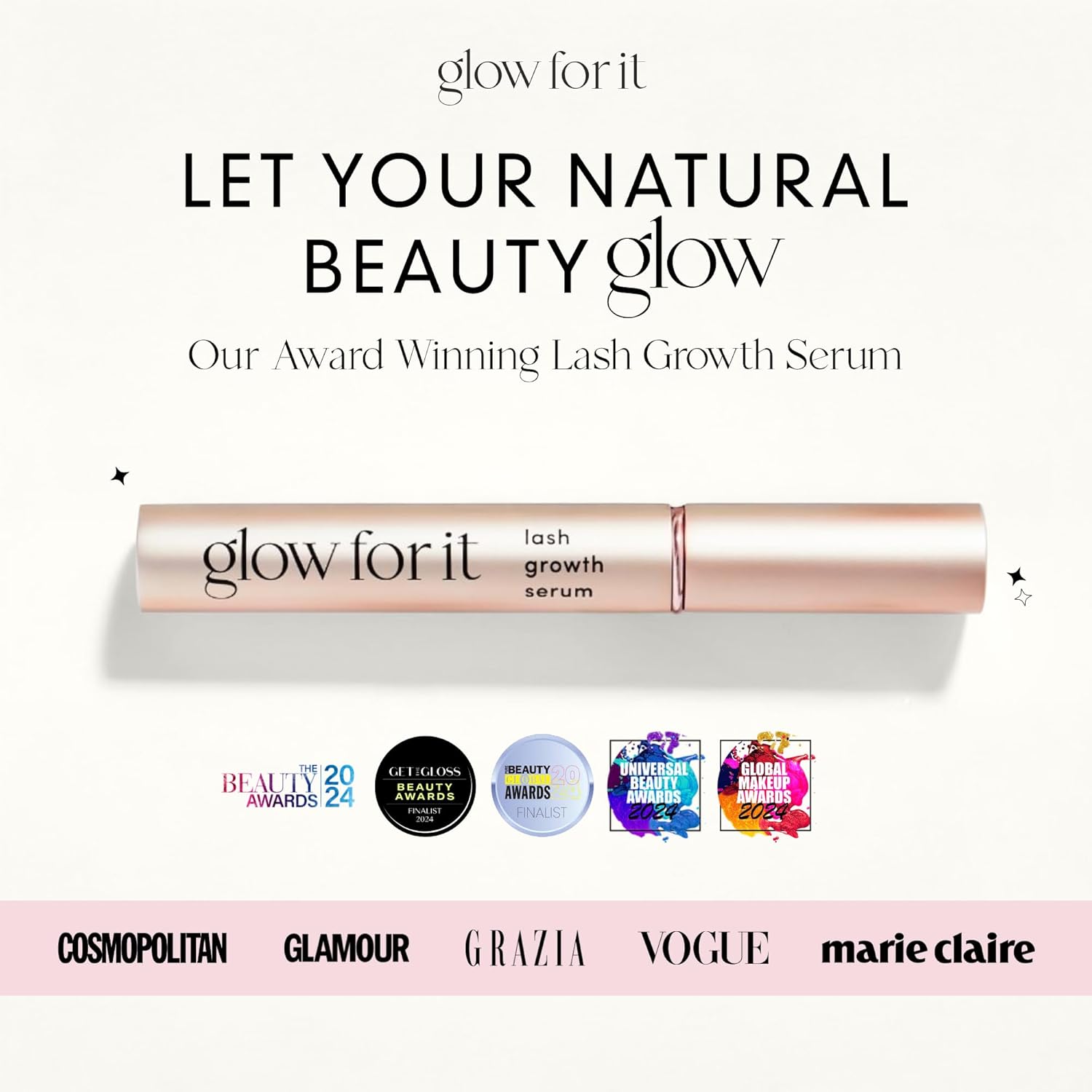 Glow For It - Lash Growth Serum | Enhances Eyelash Length & Volume | Water Based Serum | Natural & Cruelty-Free Formula With Biotin, Peptides & Natural Extracts | 3Ml