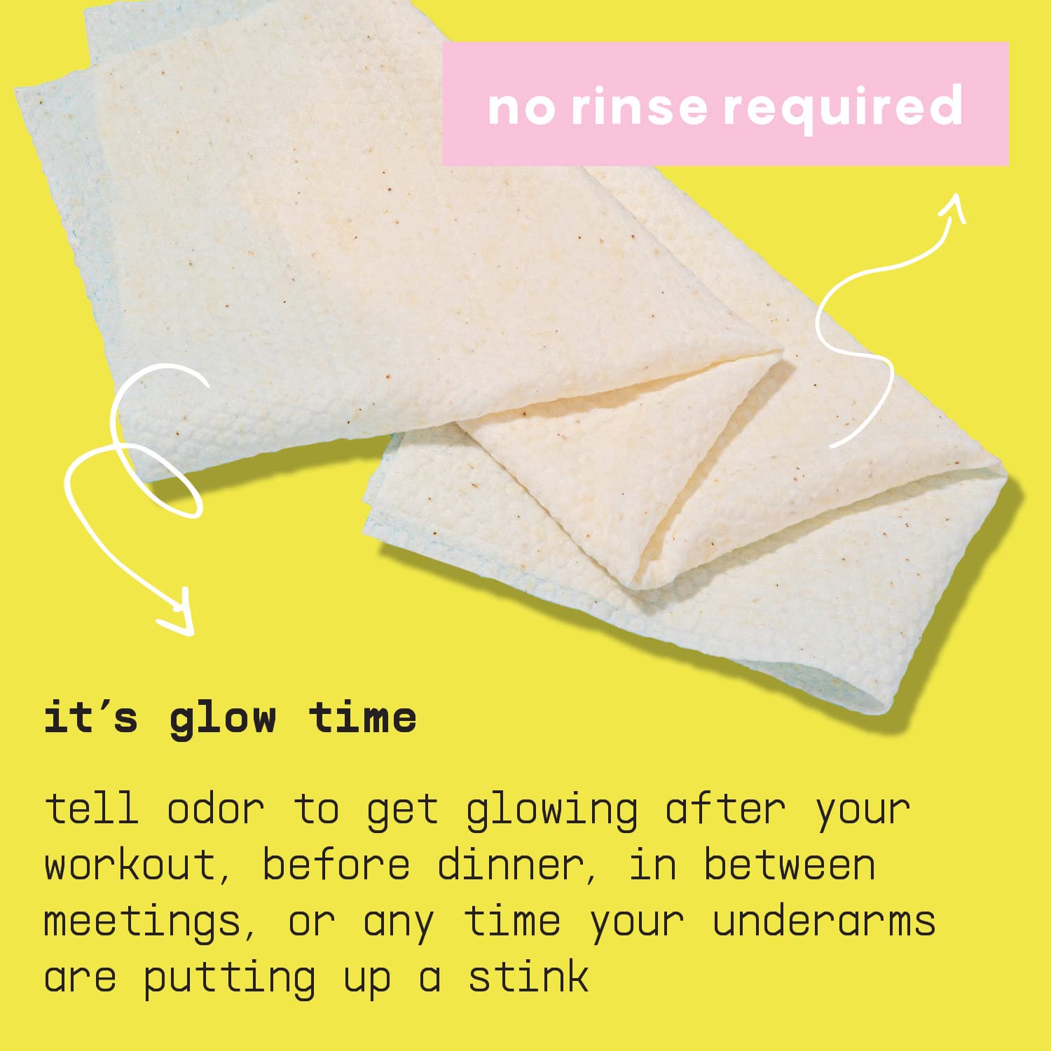 About this item EXPERIENCE A TRUE CLEAN - Our Deodorant Wipes feature a unique blend of ingredients designed to remove dirt, sweat, and odor, leaving you feeling fresh and clean all day long. GLOW LINE β For people with normal to dry skin looking to boost complexion and hydrate NON-TOXIC β All of our wipes are free from anything harmful. Including artificial fragrance, parabens, and aluminum. THOUGHTFUL PACKAGING β We apply the same thoughtful approach to our stylish packaging as we do when it comes to selecting our ingredients, sustainability focused factories, biodegradable materials, and more. REAL SKINCARE BENEFITS β Each wipe is infused with pure, natural ingredients that truly benefit all skin types, from minimizing pores and wrinkles to toning and brightening your complexion. βΊ See more product details,EXPERIENCE A TRUE CLEAN - Our Deodorant Wipes feature a unique blend of ingredients designed to remove dirt, sweat, and odor, leaving you feeling fresh and clean all day long,GLOW LINE β For people with normal to dry skin looking to boost complexion and hydrate,NON-TOXIC β All of our wipes are free from anything harmful. Including artificial fragrance, parabens, and aluminum,THOUGHTFUL PACKAGING β We apply the same thoughtful approach to our stylish packaging as we do when it comes to selecting our ingredients, sustainability focused factories, biodegradable materials, and more,REAL SKINCARE BENEFITS β Each wipe is infused with pure, natural ingredients that truly benefit all skin types, from minimizing pores and wrinkles to toning and brightening your complexion