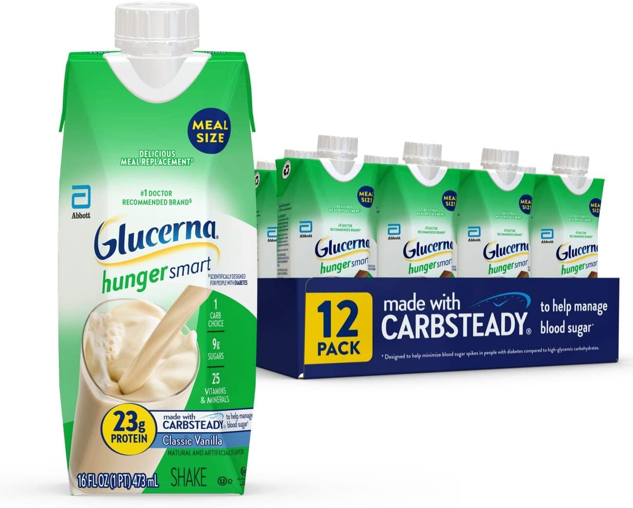 Glucerna Hunger Smart Meal Size Shakes Are Scientifically Designed As Meal Replacements For People With Diabetes. Our Meal-Size Nutrition Shakes Have Carbsteady, Unique Blends Of Slow-Release Carbohydrates To Help Minimize Blood Sugar Spikes,* As Well As 23G Of High-Quality Protein To Help You Manage Hunger. Each Shake Contains Nutrients For Immune System Support, Like Vitamins A & D, Zinc, And Antioxidants (Vitamins C & E). Gluten-Free And Suitable For Lactose Intolerance.‡ Glucerna Is The #1 Nutrition Brand Recommended By Doctors For People With Diabetes. * Designed To Help Minimize Blood Sugar Spikes Compared To High-Glycemic Carbohydrates. † The Snap Name Is A Service Mark Of The Us Department Of Agriculture; Usda Does Not Endorse Any Goods, Services, Or Enterprises. ‡ Not Suitable For People With Galactosemia