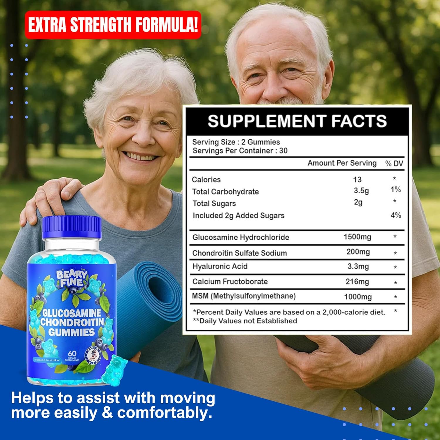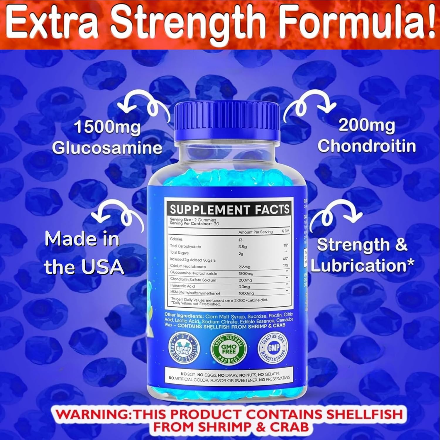 Glucosamine Chondroitin Gummies – 1500Mg Extra Strength With Msm – For Adults, Men & Women – 60 Gummies – Made In The Usa