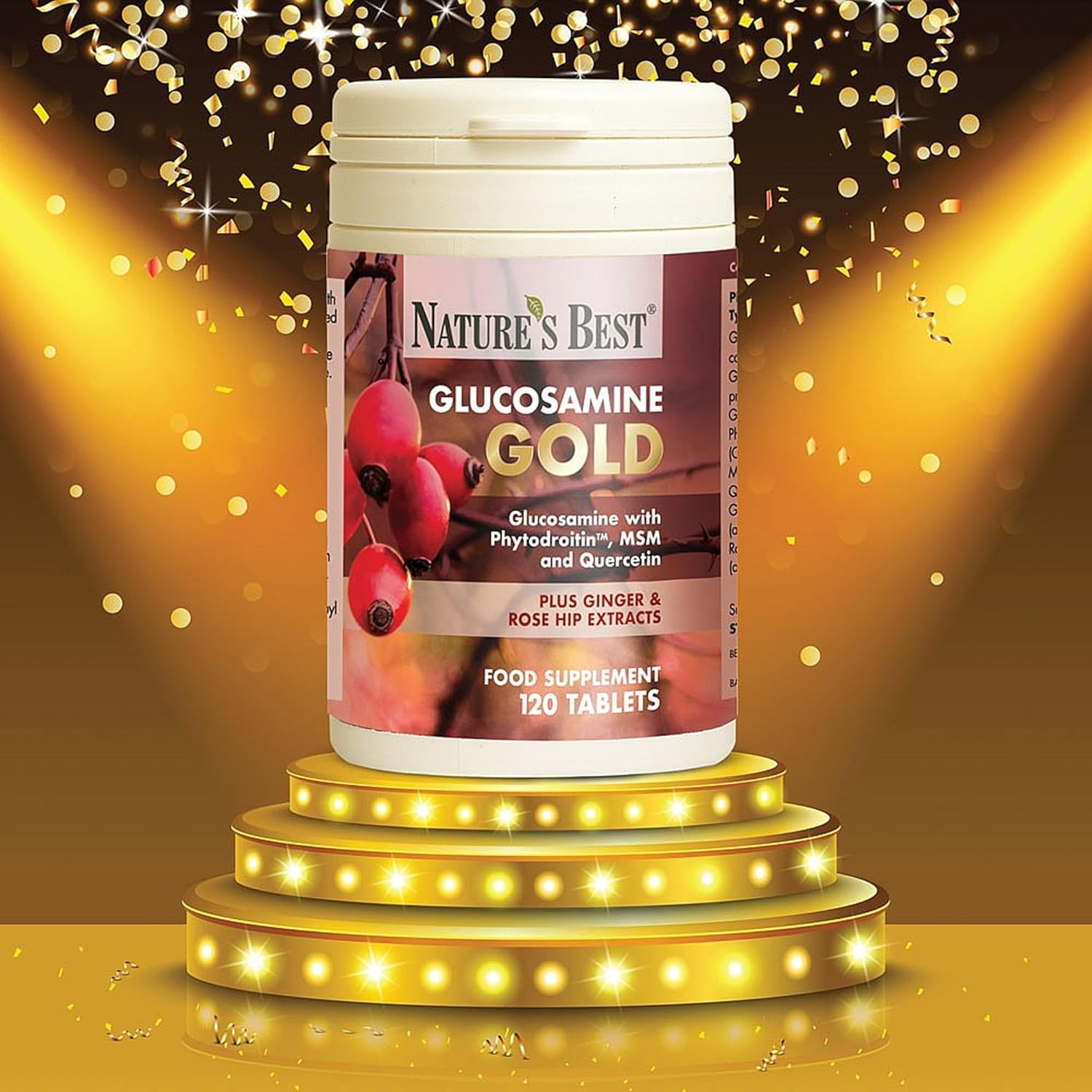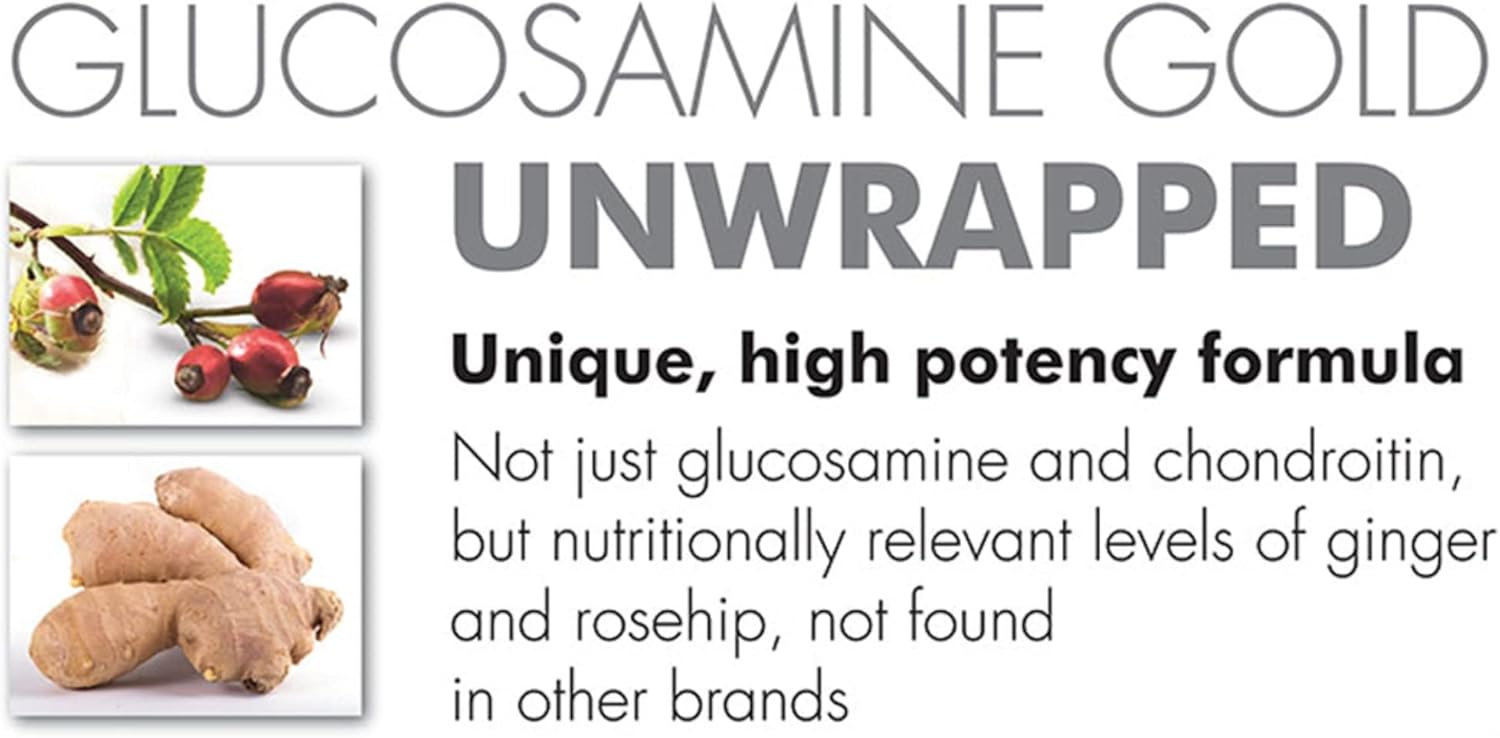 Glucosamine Gold | High Strength 1400Mg 100% Plant-Based | 120 Tablets | All-In-One Formula With Phytodroitin™, Chondroitin, Ginger, Rosehips And Quercetin | Taste Free Tablets | Made In The Uk