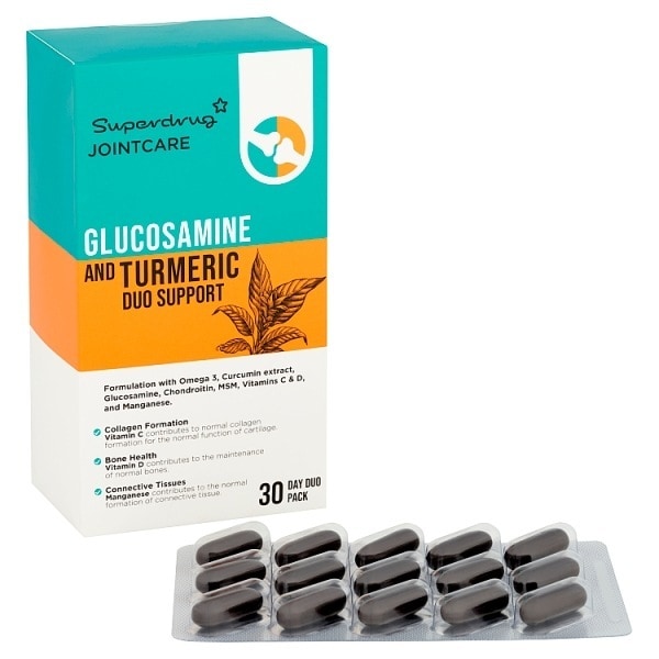 Product Information:Duo Support Formulation With Omega 3, Curcumin Extract, Glucosamine, Chondroitin, Msm, Vitamins C &Amp; D, And Manganese,Features:Collagen Formation1 Bone Health2 Connective Tissues3 1. Vitamin C Contributes To Normal Collagen Formation For The Normal Function Of Cartilage 2. Vitamin D Contributes To The Maintenance Of Normal Bones 3. Manganese Contributes To The Normal Formation Of Connective Tissue,Warning Or Restrictions:Do Not To Exceed The Stated Recommended Daily Dose. Food Supplements Should Not Be Used As A Substitute For A Varied Diet. Not Recommended For Children Under 18 Or Pregnant/Lactating Women,Product Specification:Glucosamine &Amp; Omega 3 Softgel Gelatin Capsule (Bovine Gelatin, Humectant (Glycerol), Water, Colour (Brown Iron Oxide)), Fish Oil, Potassium Glucosamine Sulphate (Crustaceans), Refined Soybean Oil, Emulsifiers (Beeswax, Soy Lecithin), Chondroitin Sulphate (Crustaceans), Methylsulfonylmethane (Msm), Calcium Ascorbate (Vitamin C), Manganese Sulphate, Cholecalciferol (Vitamin D3) Allergen Advice: For Allergens, See Ingredients In Bold Curcumin Tablet Bulking Agents (Dicalcium Phosphate, Microcrystalline Cellulose), Turmeric Extract 50:1 (Curcuma Longa), Anti-Caking Agents (Silicon Dioxide, Magnesium Stearate), Coating (Hydroxypropyl Methylcellulose, Polyvinyl Alcohol, Talcum Powder, Polyethylene Glycol, Magnesium Stearate),Product Uses:Take 1 Tablet And 1 Softgel Each Day With Your Main Meal