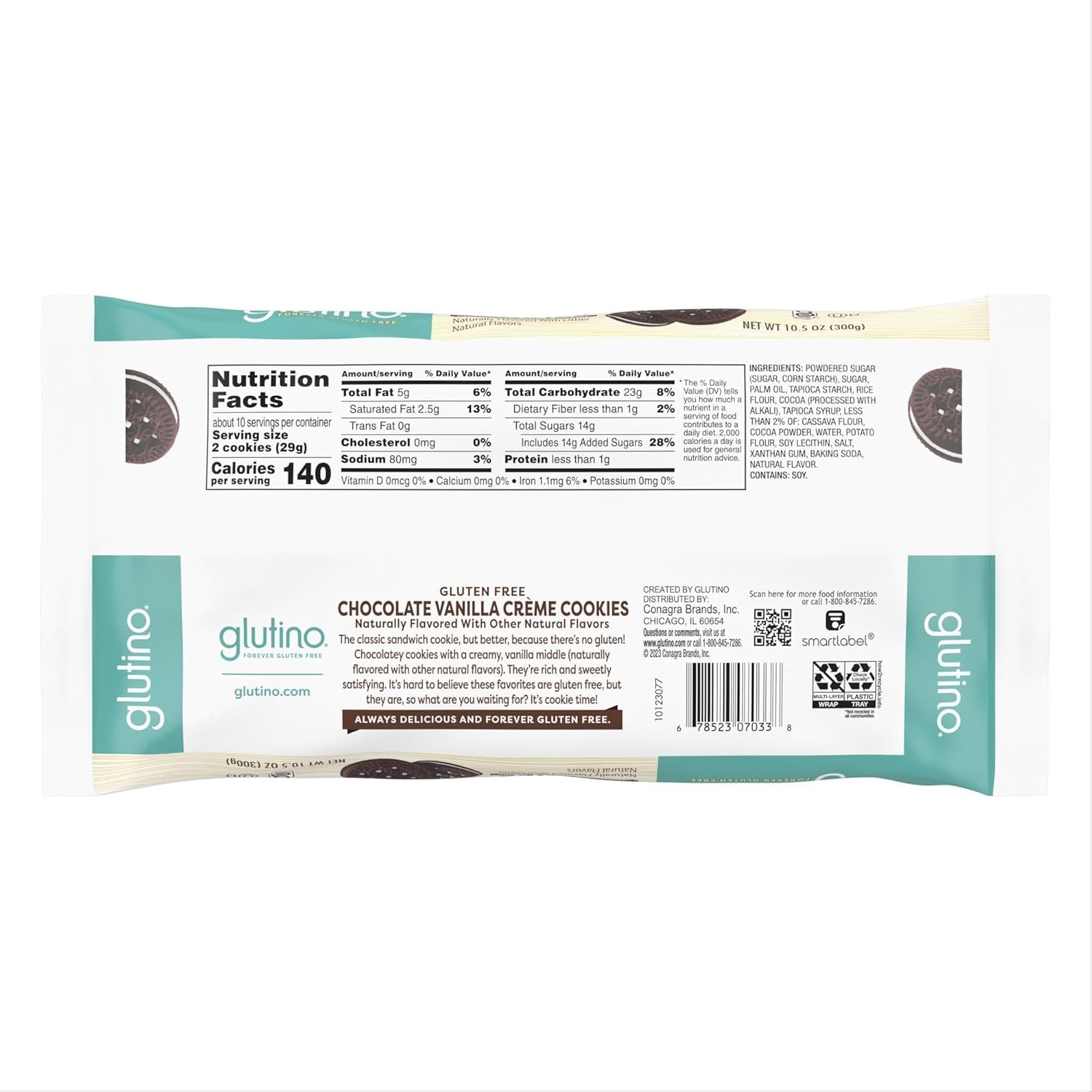 Glutino Chocolate Vanilla Creme Cookies, 10.5 Oz