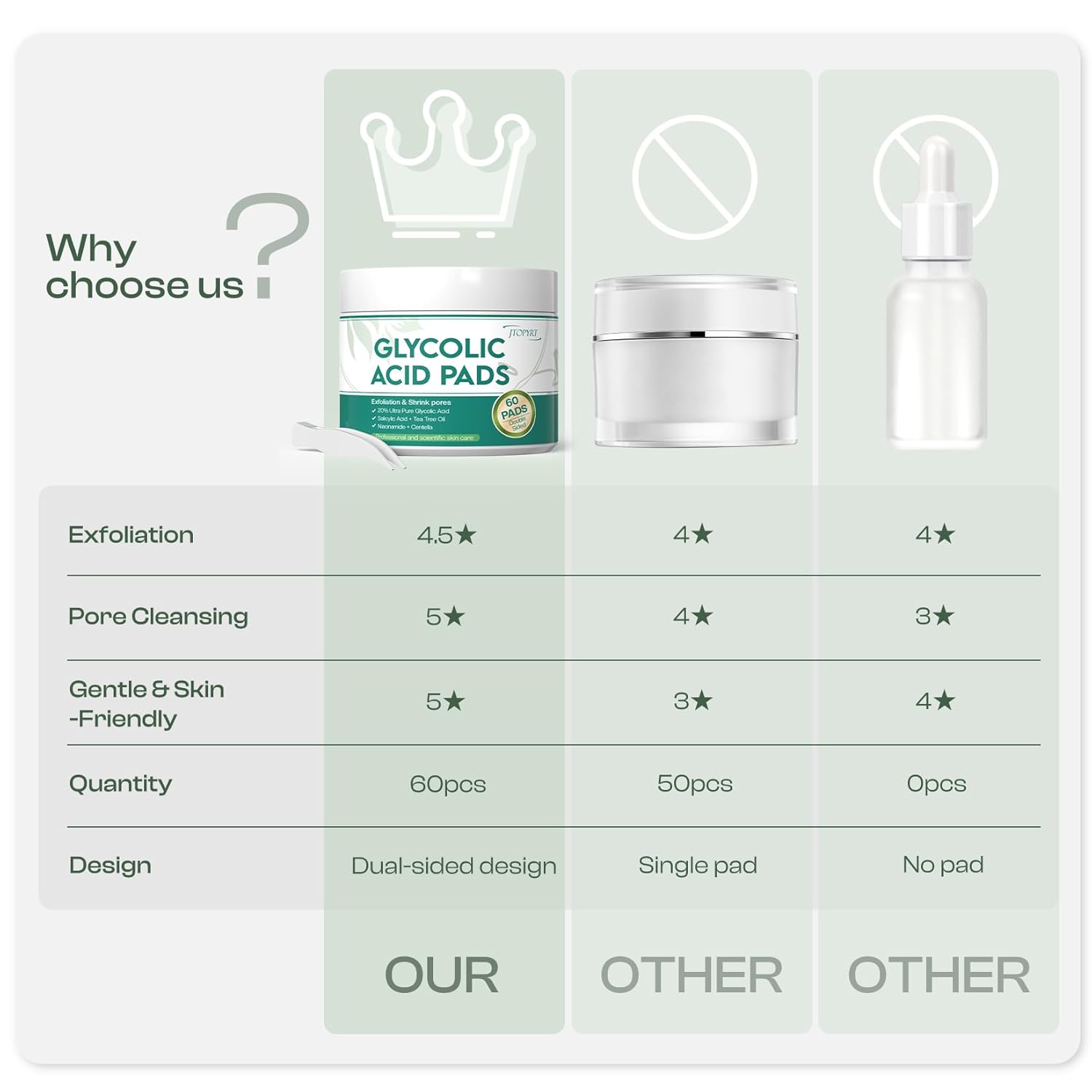 Oil-Control & Pore Refining:Dermatologist-tested glycolic acid pads shrink enlarged pores with 20% ultra-pure strength. Tea tree oil controls shine while centella asiatica soothes β essential for acne prone skin care regimens. 60-count value