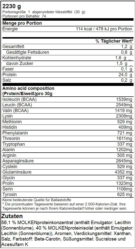 About this item GN Laboratories protein with microfiltered whey protein isolate with cross flow, strong anabolic effect by rapid increase of the amino acid level in the blood. Very high biological value - 5.6 grams of BCAA per protein. Over 80 grams of protein per 100 grams! Less than 1 gram of fat per serving, only 1.5 grams of carbohydrates per serving. Excellent solubility and unbeatable taste! › See more product details,GN Laboratories protein with microfiltered whey protein isolate with cross flow, strong anabolic effect by rapid increase of the amino acid level in the blood,Very high biological value - 5.6 grams of BCAA per protein,Over 80 grams of protein per 100 grams!,Less than 1 gram of fat per serving, only 1.5 grams of carbohydrates per serving,Excellent solubility and unbeatable taste!