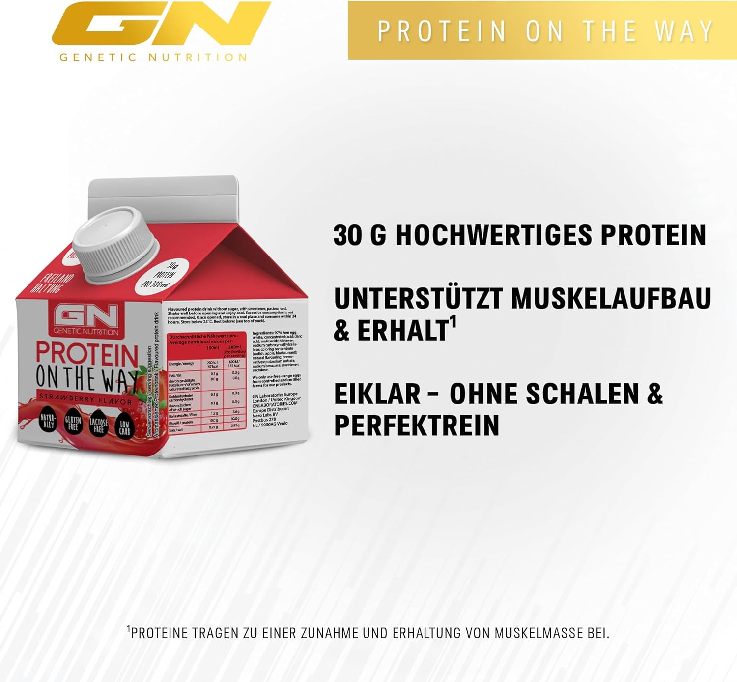 Gn Laboratories Protein On The Way (6 X 300 Ml Raspberry) - Practical Lactose Celebration Egg Clear Protein Drink - Ideal For Muscle Building