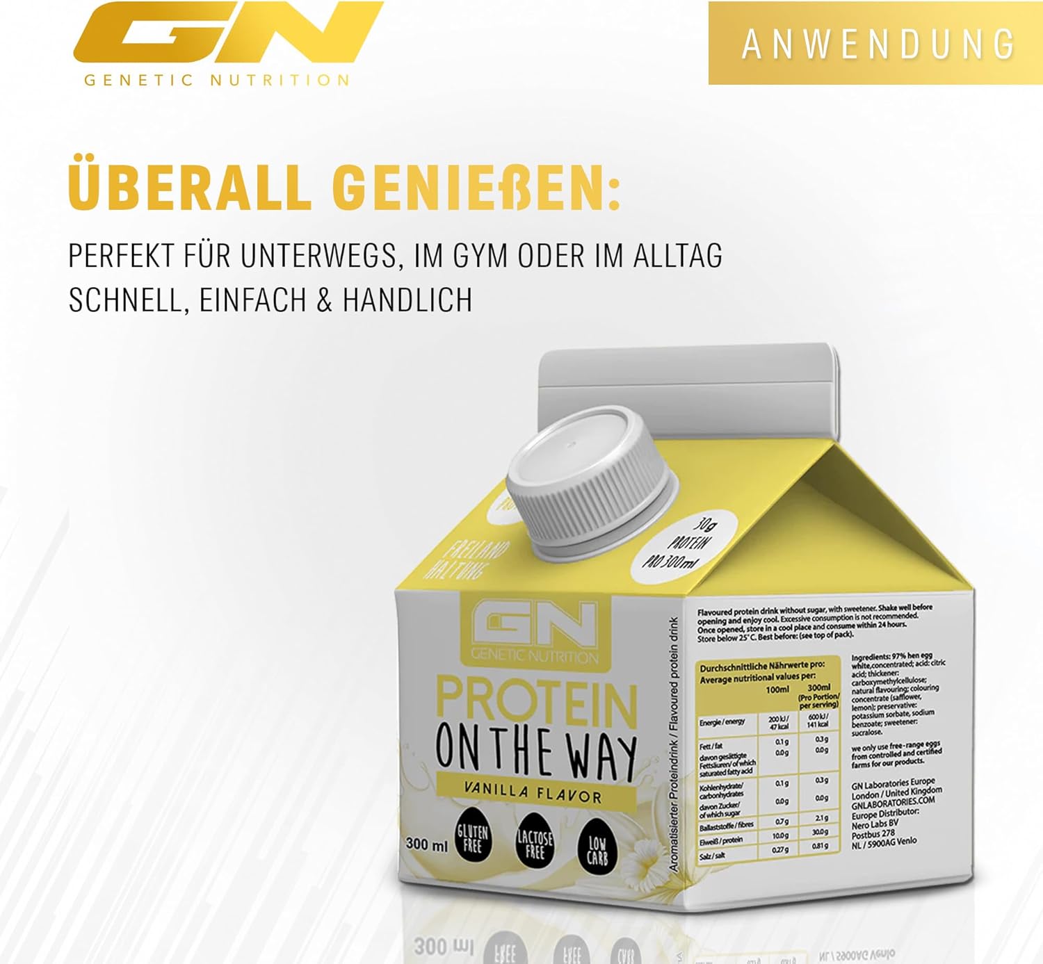 Gn Laboratories Protein On The Way (6 X 300 Ml Vanilla) - Practical Lactose Celebration Egg Clear Protein Drink - Ideal For Muscle Building