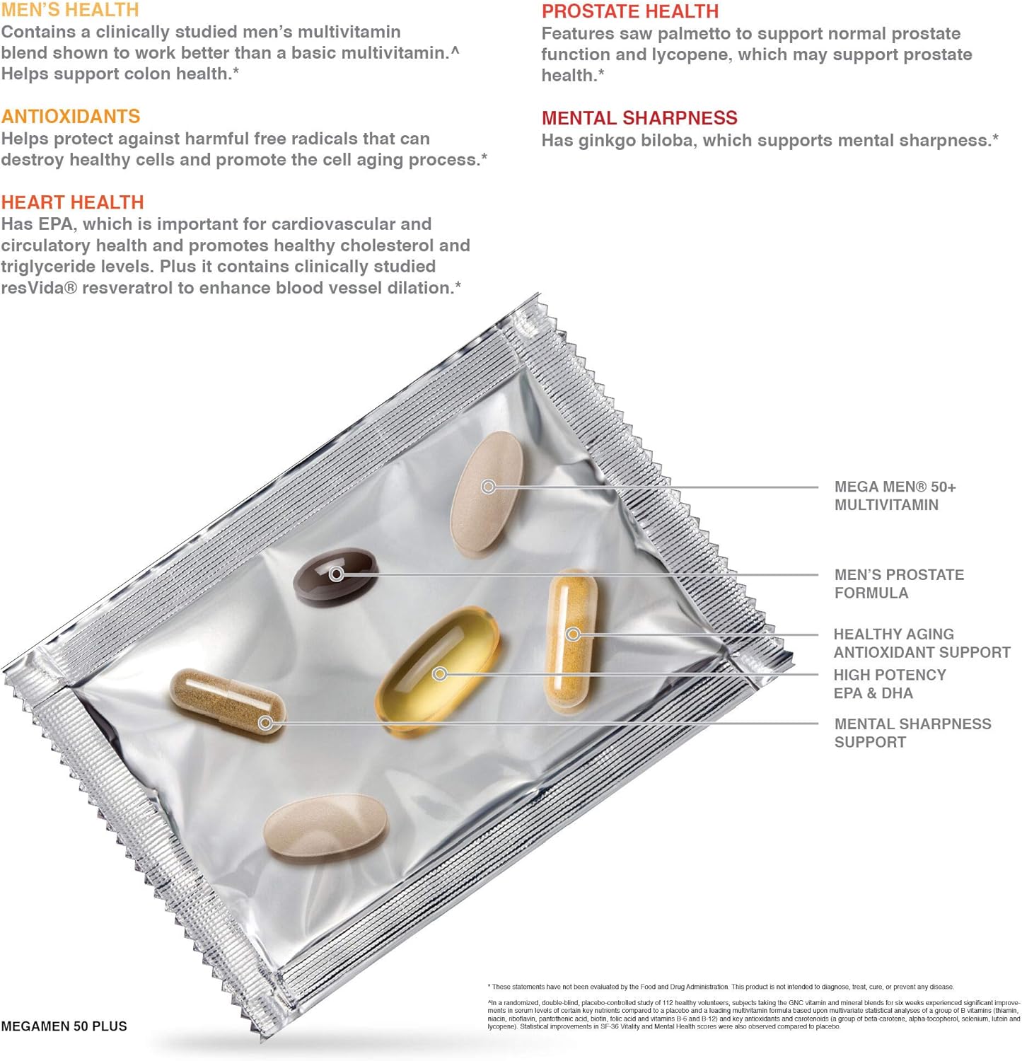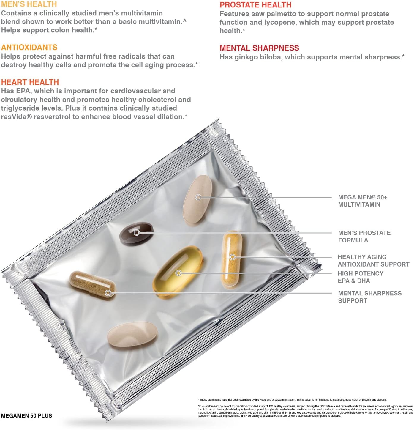 Men’s Health – Contains a clinically studied multivitamin blend shown to work better than a basic multivitamin