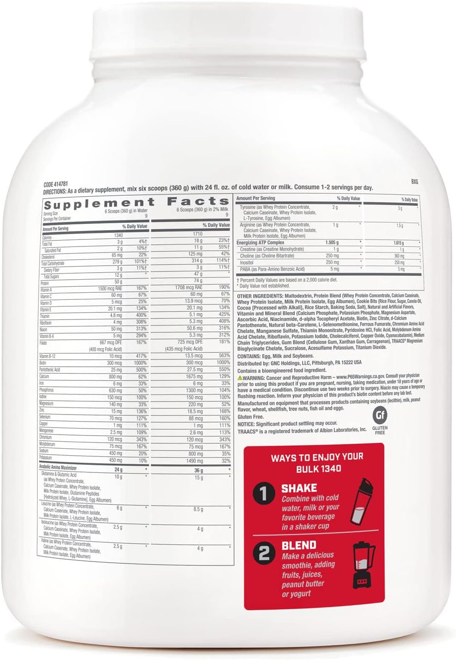 Gnc Pro Performance Bulk 1340 - Cookies And Cream, 9 Servings, Supports Muscle Energy, Recovery And Growth