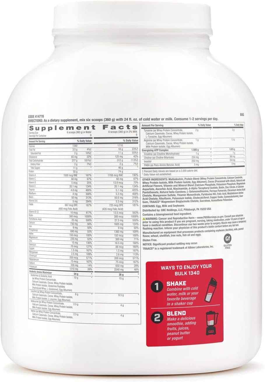 Gnc Pro Performance Bulk 1340 - Double Chocolate, 9 Servings, Supports Muscle Energy, Recovery And Growth,Cream