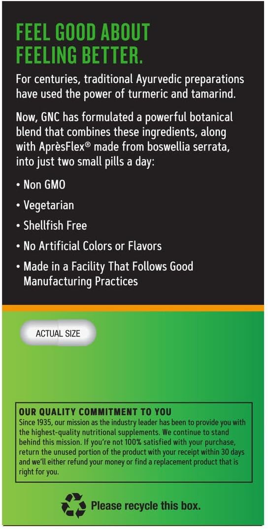 For Centuries, Traditional Ayurvedic Preparations Have Used The Power Of Turmeric And Tamarind Seed. Now, Gnc Has Formulated A Powerful, Unique Botanical Blend That Combines These Ingredients, Along With Aprèsflex Made From Boswellia Serrata, Into Just Two Small Pills A Day To Give You Gnc Tamaflex Fast Acting