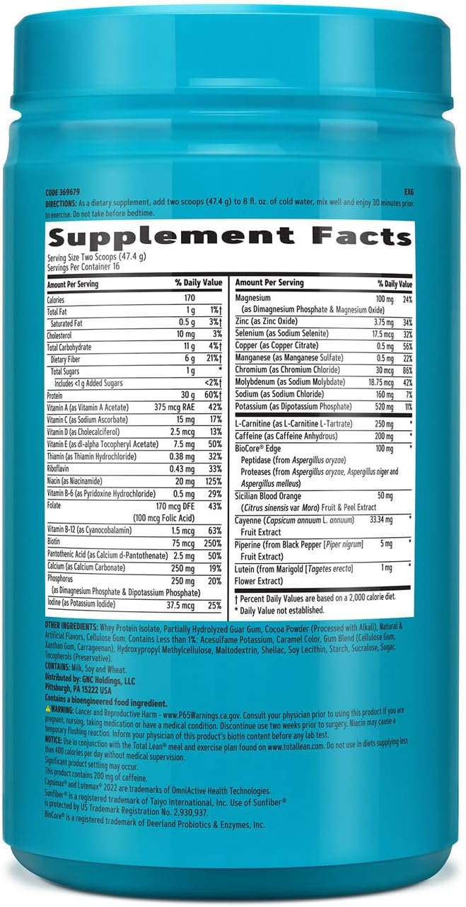 Gnc Total Lean | Lean Shake Burn, Protein Powder | Hunger Satisfying, High Protein Blend, Proven To Burn 3X More Calories | Chocolate Fudge | 16 Servings
