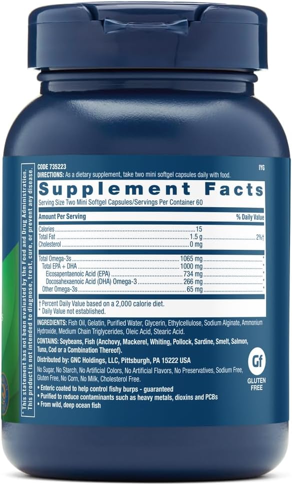 Help Support Your Heart, Brain, Skin, Eye And Joint Health With Gnc Triple-Strength Fish Oil Mini Softgels. This Daily Dietary Supplement Offers 1,000Mg Of Epa/Dha Omega-3S From Wild, Deep Ocean Fish, Such As Salmon, Tuna, Cod And Anchovy