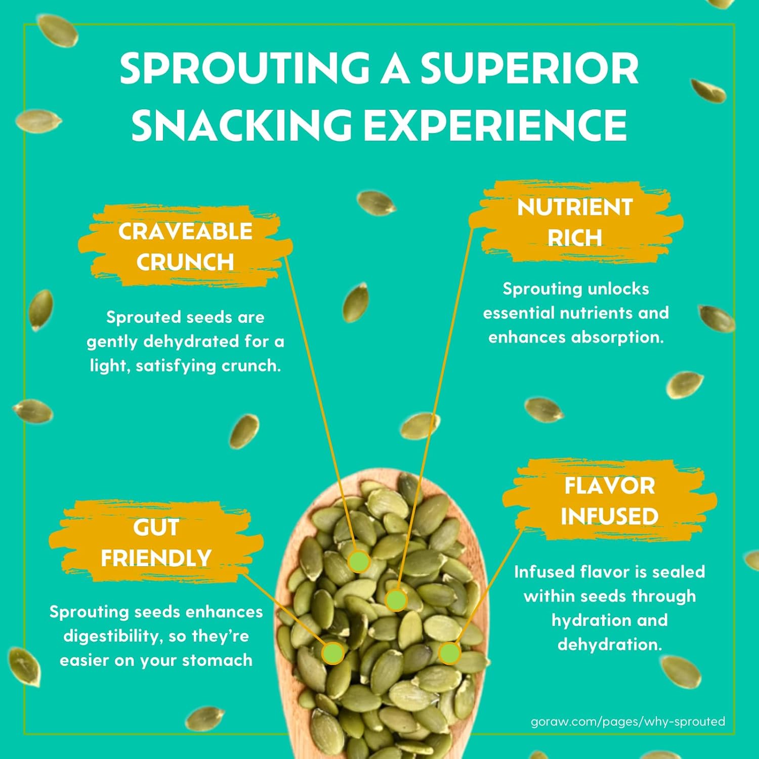Sprouted Superfood: Go Raw Sprouted Seeds Are Soaked And DriedāNever Roasted Or FriedāTo Unlock Beneficial Bioavailable Nutrients, And Making It Easier For Your Body To Absorb Them. All With A Great Crunchy Texture And Flavor!