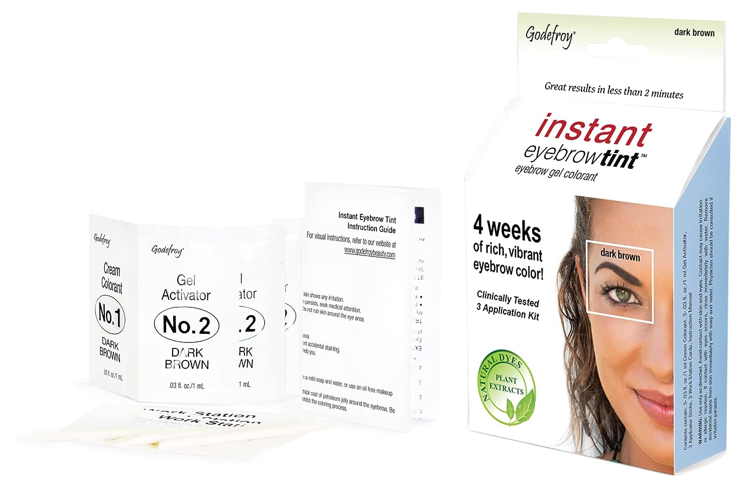 Godefroy Instant Eyebrow Color, Dark Brown, .18 s, 12-weeks of long lasting brow color, 3-applications per kit