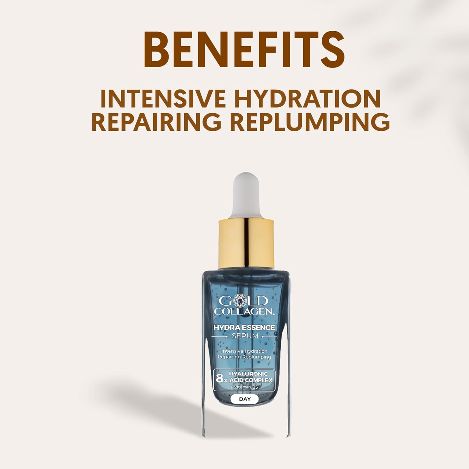 Gold Collagen Hydra Essence - Daily Moisture Hyaluronic Acid Serum Face & Neck Skincare, Repairing & Plumping Effect For Smoother Skin, Face Serum For Skin Care Helps Reduce Fine Lines & Wrinkles 30Ml