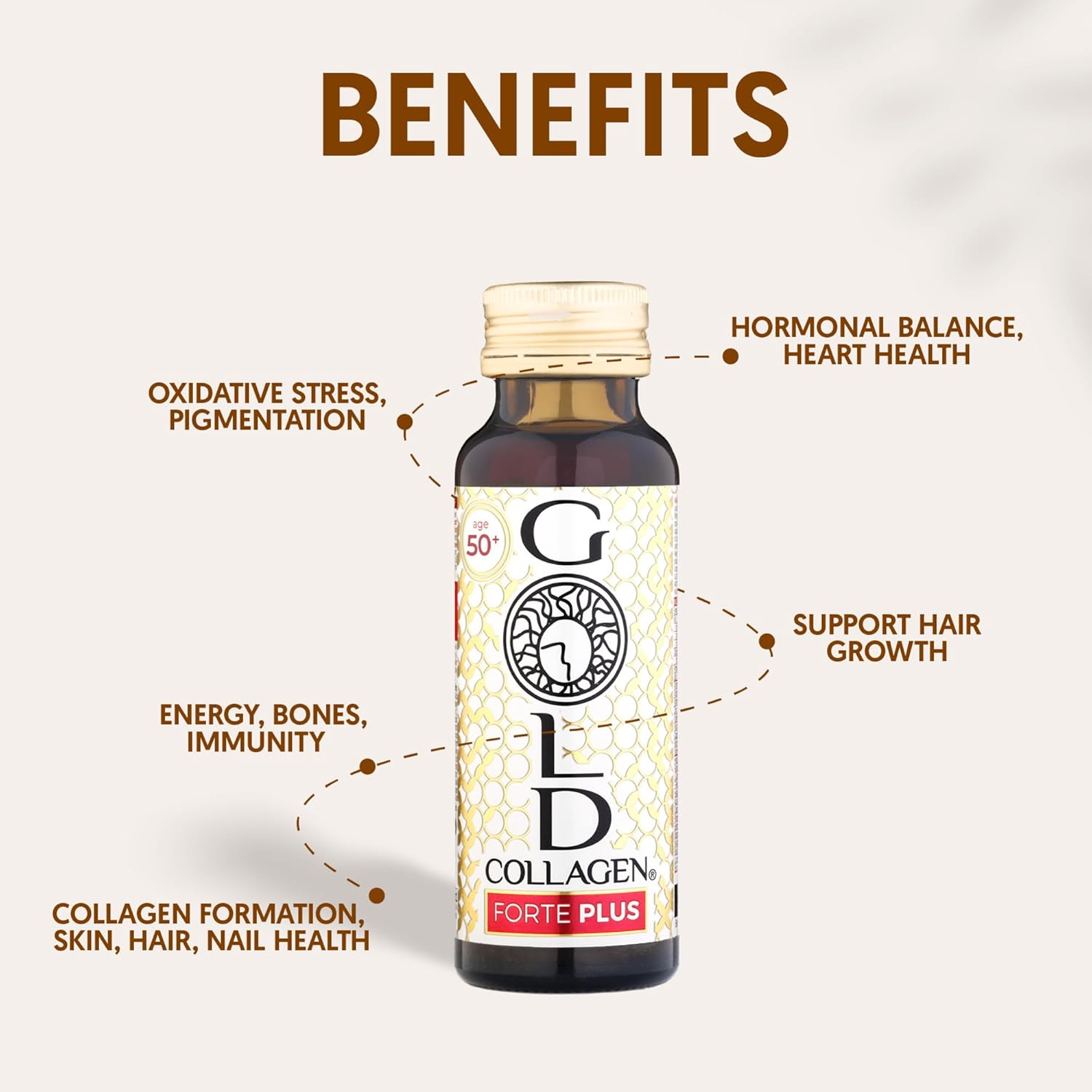 Gold Collagen New Forte Plus - Collagen Supplements For Women & Men With Biotin Hair Growth, Skin & Immune System Booster With 8G Of Marine Collagen, Vitamin C & Hyaluronic Acid, 1 Pack 10X50Ml