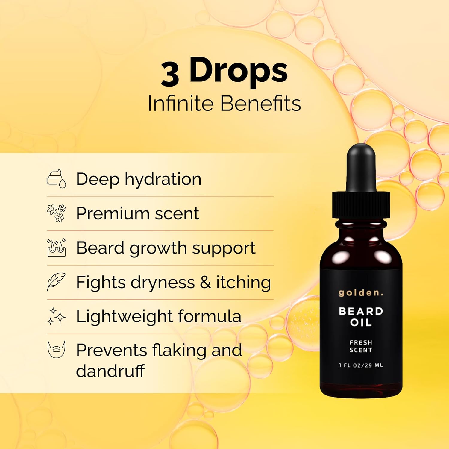 Golden Grooming Beard Oil For Men | Natural Growth Kit With Castor Oil, Jojoba Oil, And Olive Oil | Tames, Moisturizes & Styles | Cedar Frost Scent | 1Oz
