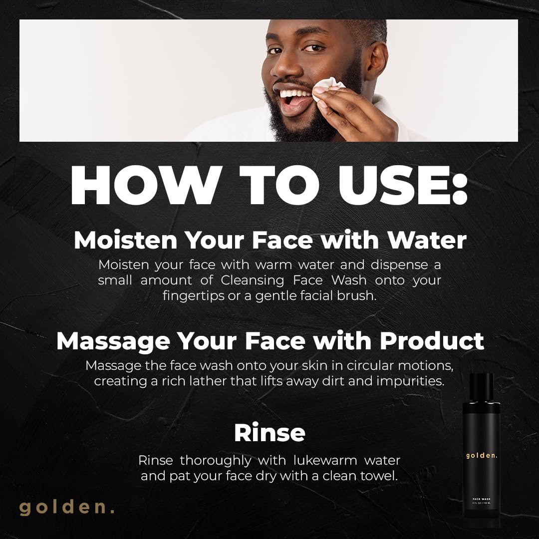 Golden Grooming Co. Men'S Face Wash | Aloe Vera & Vitamin E | Natural Facial Cleanser For Sensitive & Oily Skin | Deep Cleansing & Hydrating Foam Wash, 4Oz