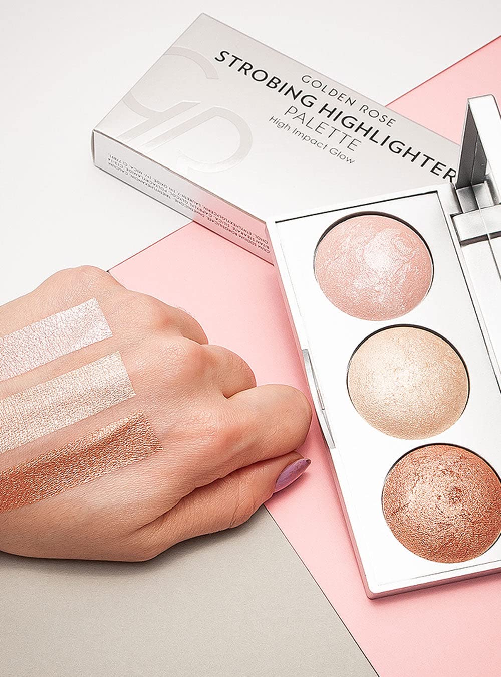 Golden Rose Strobing Highlighter Palette - Three Shimmering, Sparkling, Universal Shades - Illuminating, Lightweight