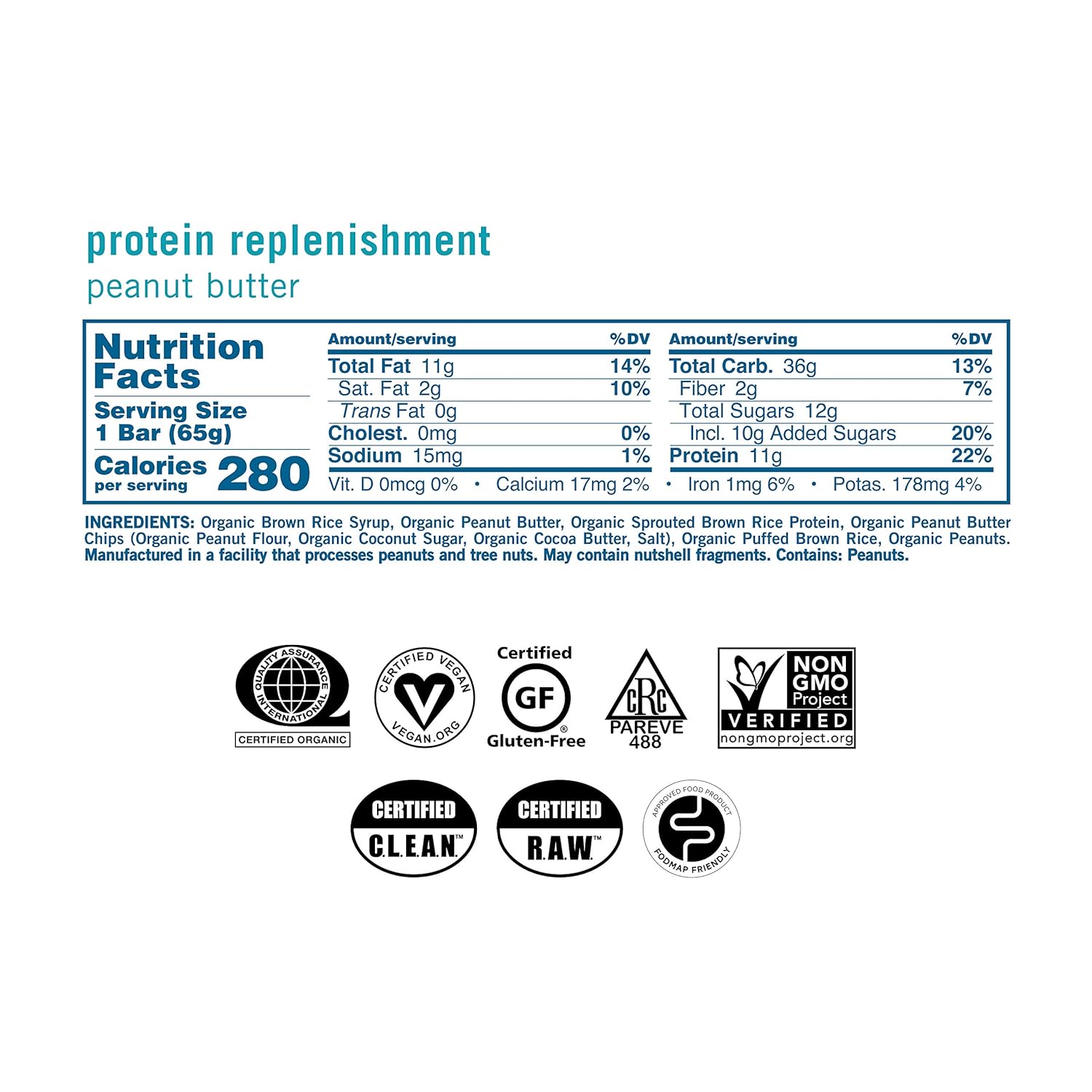 Our Protein Replenishment Macrobar Is A Peanut Butter LoverāS Dream! Crunchy Peanuts Complement Our Very Own Melt-In-Your-Mouth Vegan Peanut Butter Chips For A Celebration Of The Salty And Sweet Combination We All Know And Love. Like All Of Our Plant-Based Protein Bars, Protein Replenishment Is Certified Organic, Vegan, Gluten-Free, Kosher, Non-Gmo, C.L.E.A.N., Fodmap Friendly, And Soy-Free. Mother-Daughter Owned And Based In A Small Rural Community, GomacroāS Mission Is To Spread Awareness For A Balanced, Plant-Based Lifestyle. Our Vegan Protein Bars Are Produced With 100% Renewable Energy, WeāRe 100% Carbon Neutral, And We Continually Strive To Make A Positive Impact On The Planet. ItāS Our Goal To Inspire You To Have A Healthy Body, Sharp Mind, And Bold Spirit. Join Us As We Make The World Better, One Bite At A Time! Product Details: ⢠(12) Organic Vegan Protein Bars ⢠Flavor: Peanut Butter ⢠Size: 2.4 Ounce Bars, 12 Per Tray Ingredients: Organic Brown Rice Syrup, Organic Peanut Butter, Organic Sprouted Brown Rice Protein, Organic Peanut Butter Chips (Organic Peanut Flour, Organic Cocoa Butter, Organic Coconut Sugar, Salt), Organic Puffed Brown Rice, Organic Peanuts. Available In 16 Delicious Flavors