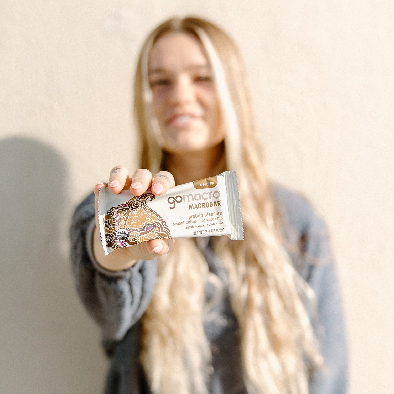 With A Crave-Worthy Blend Of Organic Creamy Peanut Butter, Chopped Roasted Peanuts, And Organic Vegan Chocolate Chips, Our Peanut Butter Chocolate Chip Macrobar Is So Delicious, You’Ll Hardly Believe It’S Made With Simple, Wholesome, Organic Ingredients! Like All Of Our Plant-Based Protein Bars, Protein Pleasure Is Certified Organic, Vegan, Gluten-Free, Kosher, Non-Gmo, C.L.E.A.N., Fodmap Friendly, And Soy-Free. Mother-Daughter Owned And Based In A Small Rural Community, Gomacro’S Mission Is To Spread Awareness For A Balanced, Plant-Based Lifestyle. Our Vegan Protein Bars Are Produced With 100% Renewable Energy, We’Re 100% Carbon Neutral, And We Continually Strive To Make A Positive Impact On The Planet. It’S Our Goal To Inspire You To Have A Healthy Body, Sharp Mind, And Bold Spirit. Join Us As We Make The World Better, One Bite At A Time! Product Details: • (12) Organic Vegan Protein Bars • Flavor: Peanut Butter Chocolate • Size: 2.4 Ounce Bars, 12 Per Tray Ingredients: Organic Brown Rice Syrup, Organic Peanut Butter, Organic Protein Blend (Organic Sprouted Brown Rice Protein, Organic Pea Protein), Organic Chocolate Chips (Organic Coconut Sugar, Organic Cocoa, Organic Cocoa Butter), Organic Puffed Brown Rice, Organic Peanuts. Available In 16 Delicious Flavors!