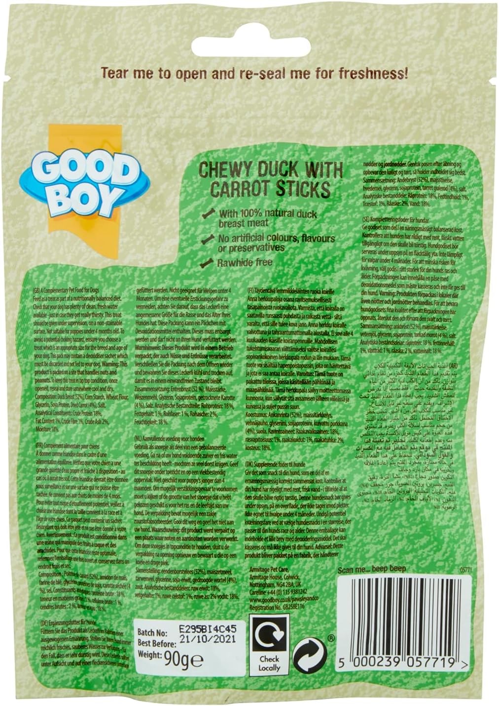 Good Boy - Chewy Duck With Carrot Sticks - Dog Treats - Made With 100% Natural Duck Breast Meat - 90 Grams E - Rawhide Free Dog Treats - Case Of 10