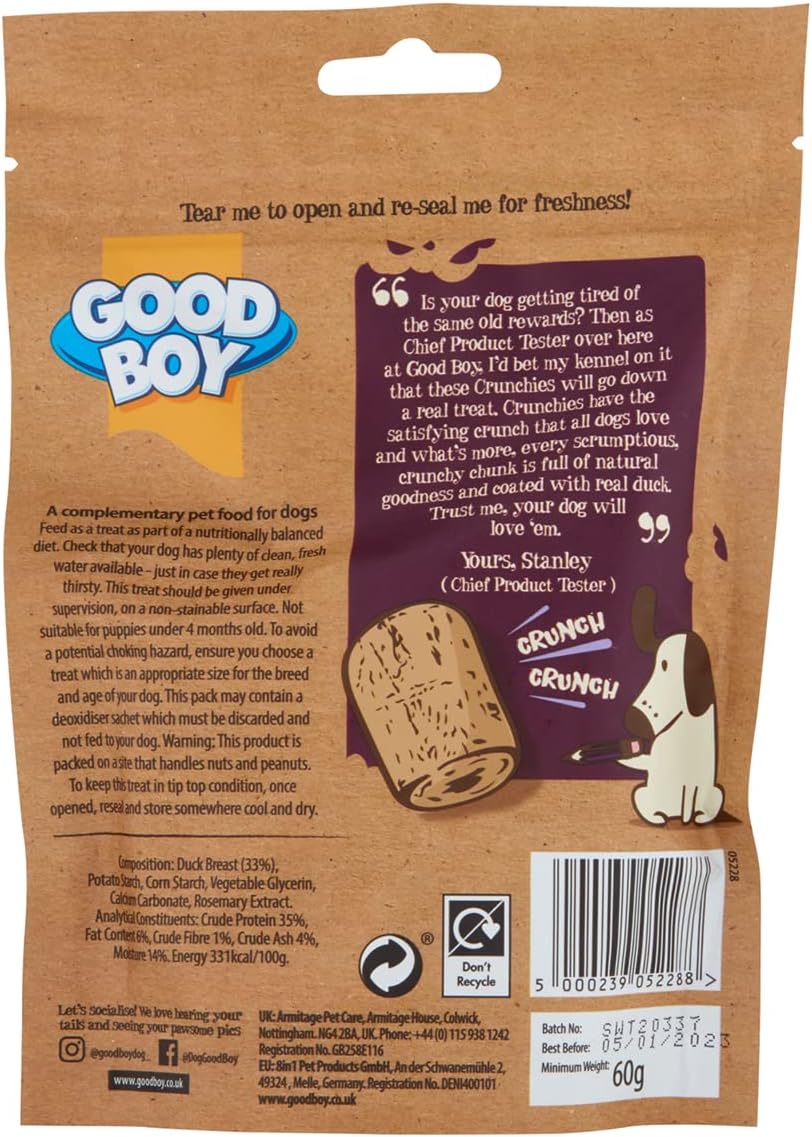 Good Boy Crunchies Mini Duck - Natural Dog Treats - Training Treats - Bulk Box - 8 X 60G