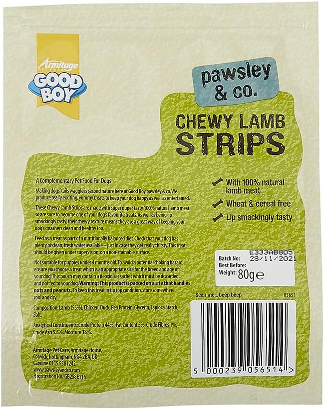Good Boy Lamb Strips - Natural Dog Treats - Wheat And Cereal Free Recipe - Bulk Box - 10 X 80G