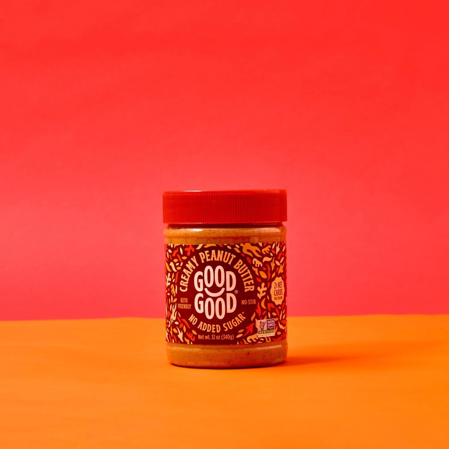 Good Good Crunchy & Creamy Peanut Butter - Keto Friendly - Low Carb & No Added Sugars - Vegan - Gluten Free - Non-Gmo - 340G Jars