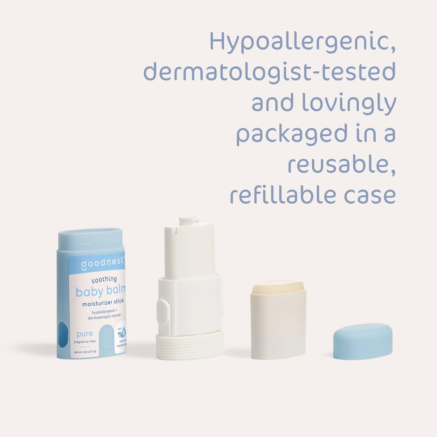 Goodnest® Baby & Toddler Travel Balm Stick - Fragrance-Free, Unscented, 6 Natural Moisturizers, Travel Balm, Organic Baby Balm, Hypoallergenic, Refillable Silicone Case For Dry & Sensitive Baby Skin