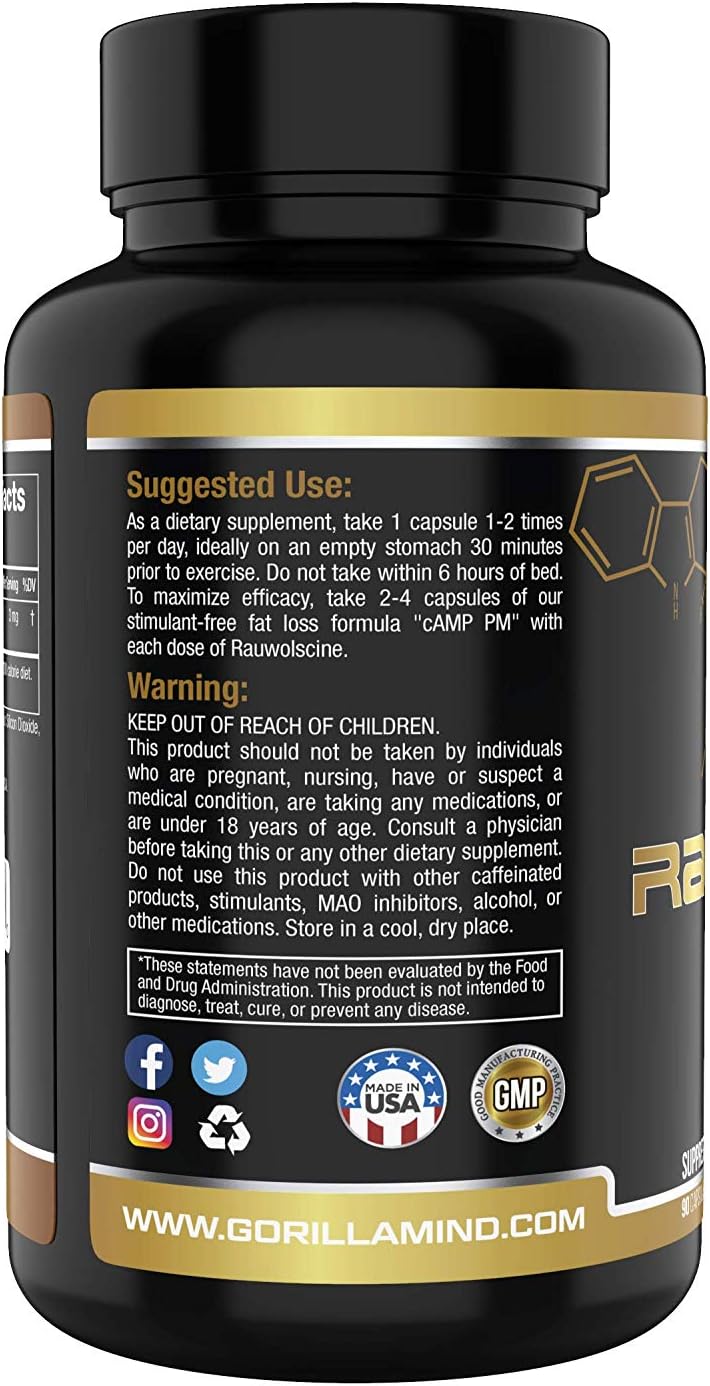Gorilla Mind Rauwolscine Suppresses Appetite/Increased Fat Loss/Increased Energy (90 Capsules)