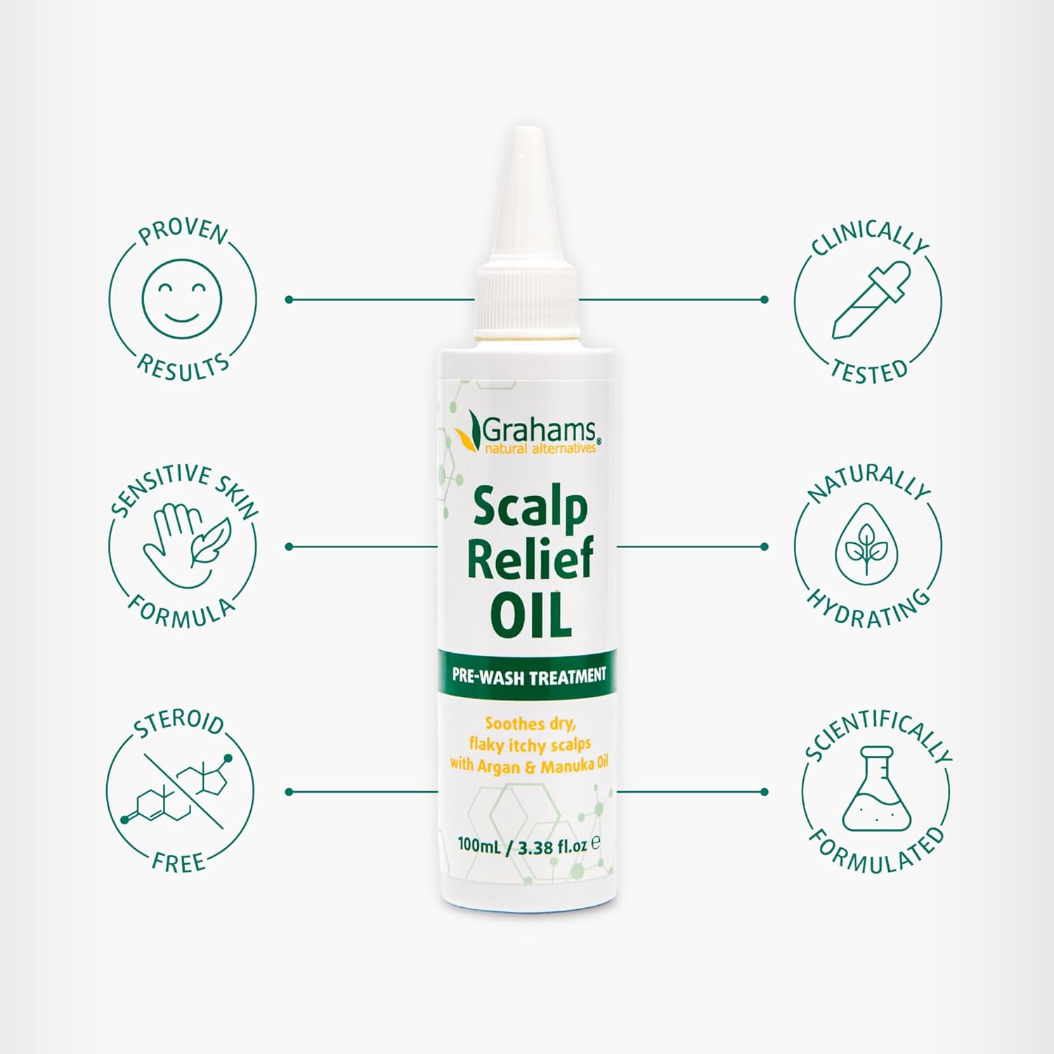 Grahams Natural Scalp Relief Oil - Scalp Treatment For Dry, Itchy & Flaky Scalp Psoriasis, Seborrheic Dermatitis & Dandruff Scalp Treatment - Hydrating, Moisturising & Exfoliating Scalp Oil (100Ml)