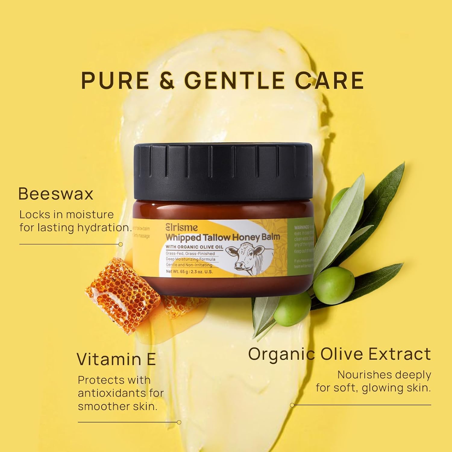 Grass Fed Beef Tallow For Skin: Organic Whipped Tallow And Honey Balm - Nourishing Body & Face Moisturizer - Deep Hydration, Eczema Psoriasis & Dermatitis, 2.3 Oz