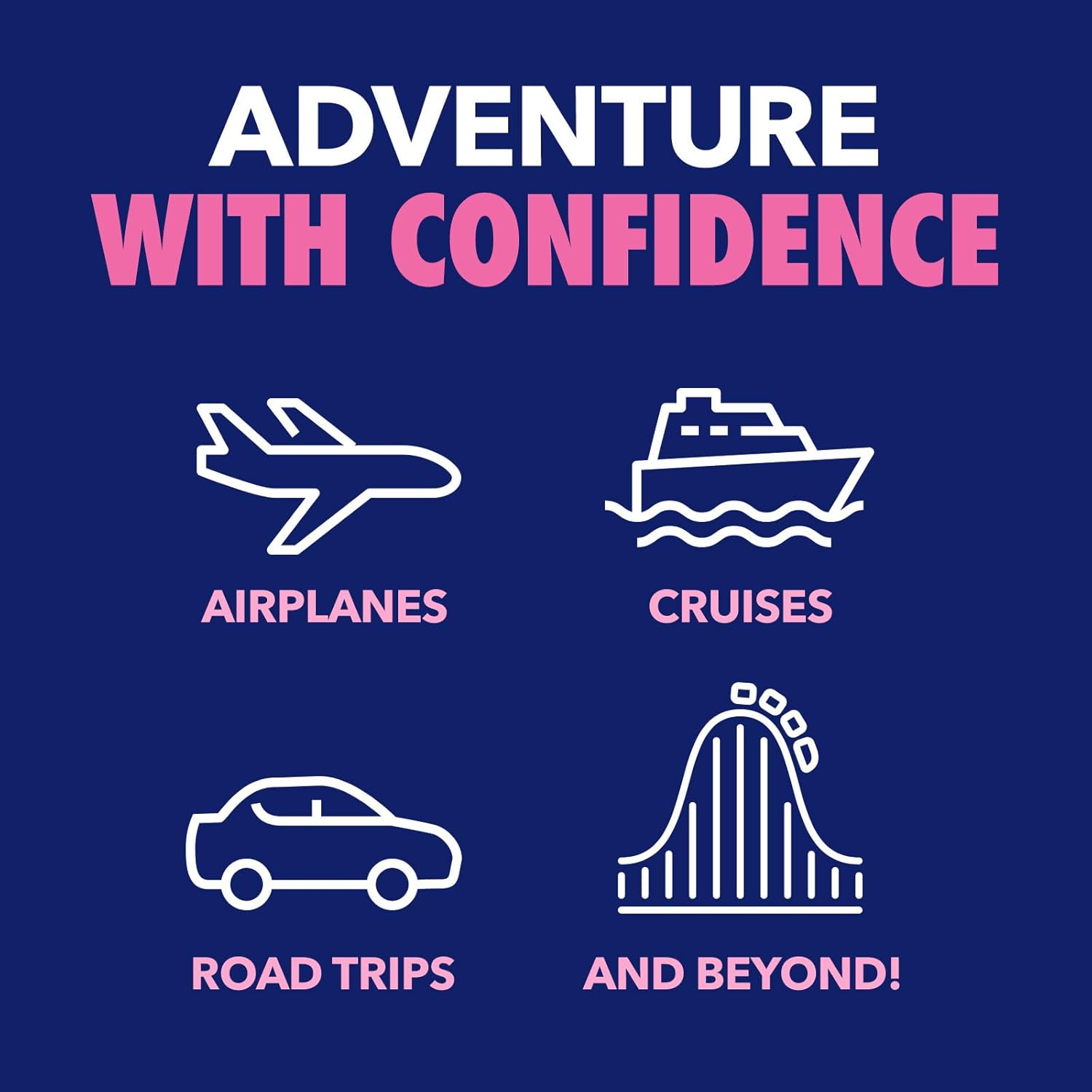 When motion sickness strikes, get vomiting, dizziness, and nausea relief on the fly; perfect for road trips, airplanes, cruises, amusement park rides, excessive screen time, and more
