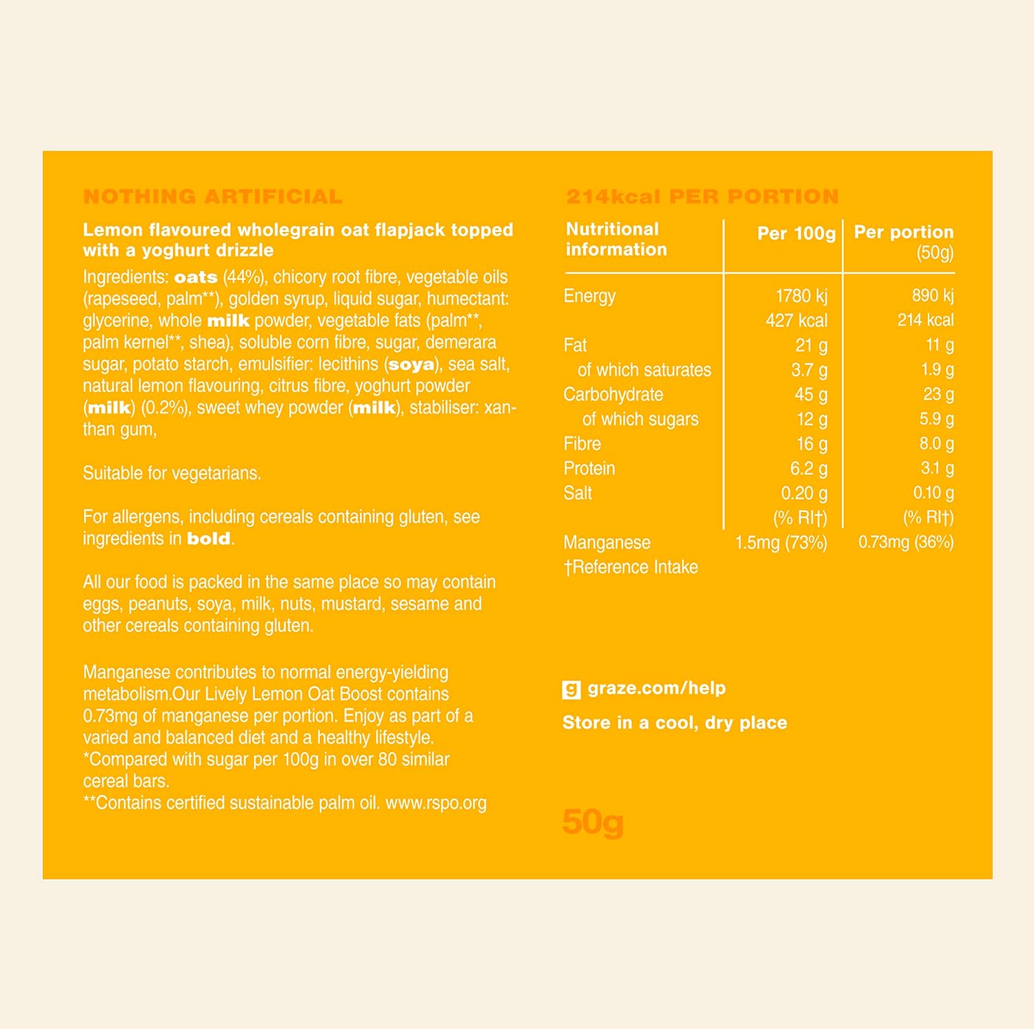 Graze Lively Lemon Oat Flapjacks, Vegetarian Healthy Snacks, High In Fibre, 3 Bars Per Punnet, Whole Oats & Natural Flavours - Packaging May Vary-(9 X 50G Snacks)