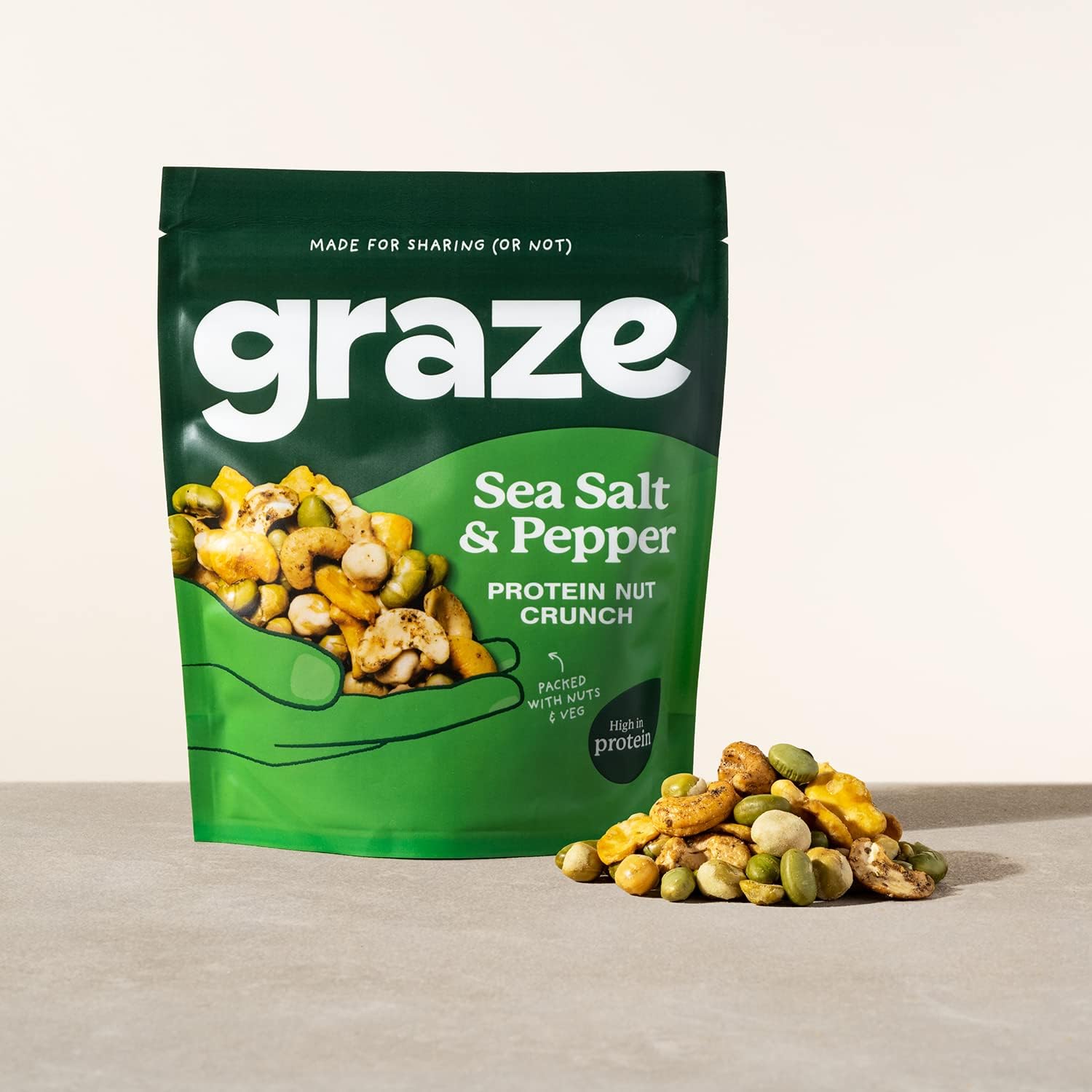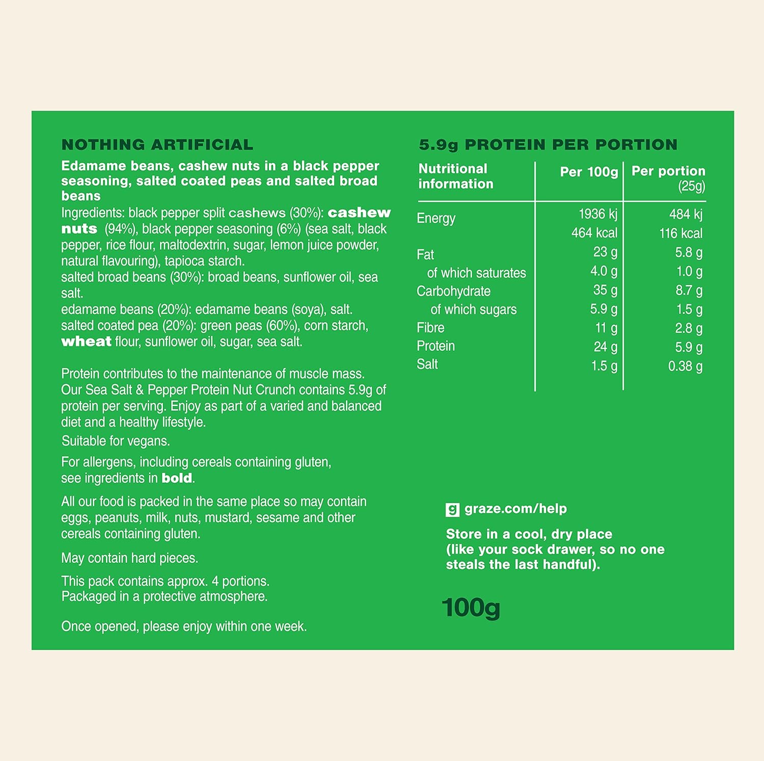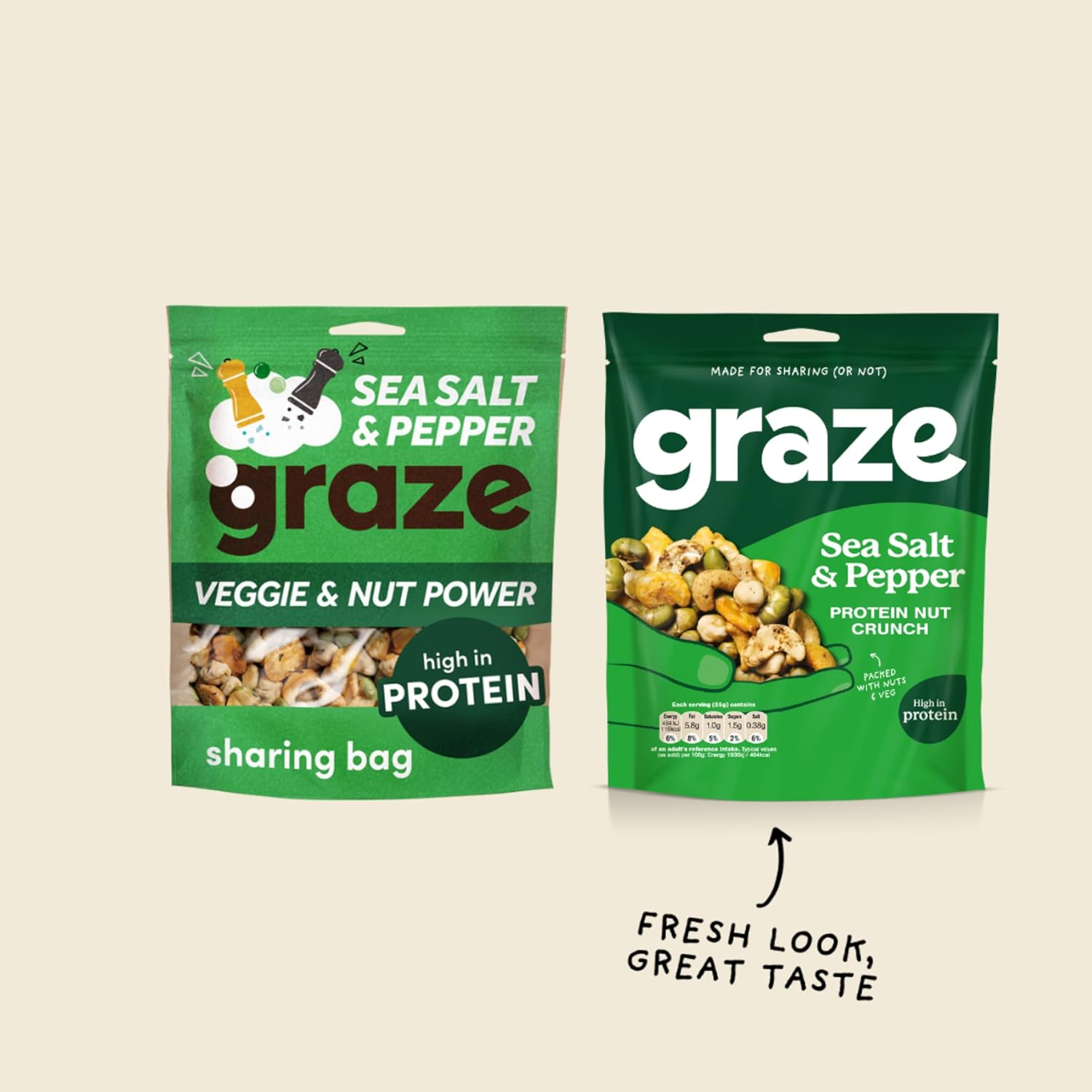 Graze Sea Salt & Pepper Veggie Protein Power - Vegan Savoury Snacks Sharing Bag - Packaging May Vary - 100G (Pack Of 6)